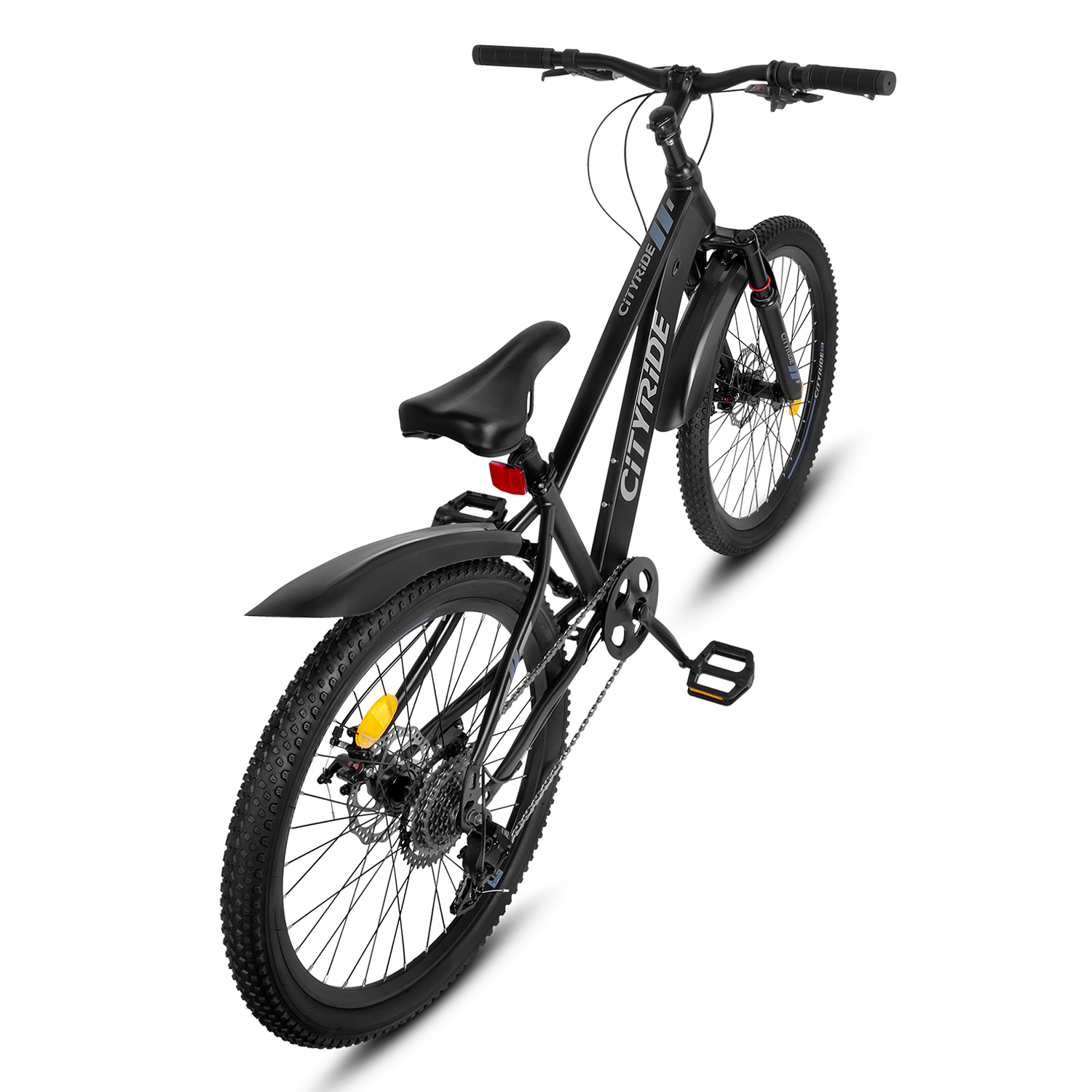 Велосипед CITYRIDE 24", модель CR-B2-SH03, рама сталь, обода двойные алюминий, трансмиссия 1*9 ск, амортизационная вилка, дисковые мех. тормоза цвет чёрный
