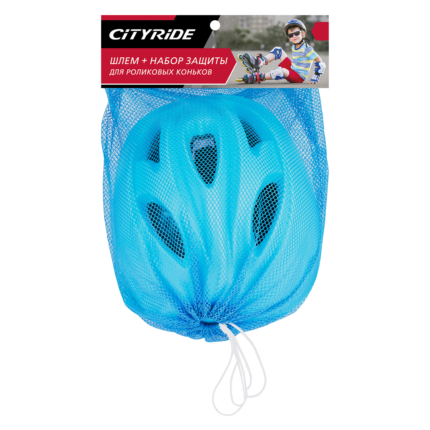Набор шлем + защита City Ride из трёх предметов, в сетке, голубой