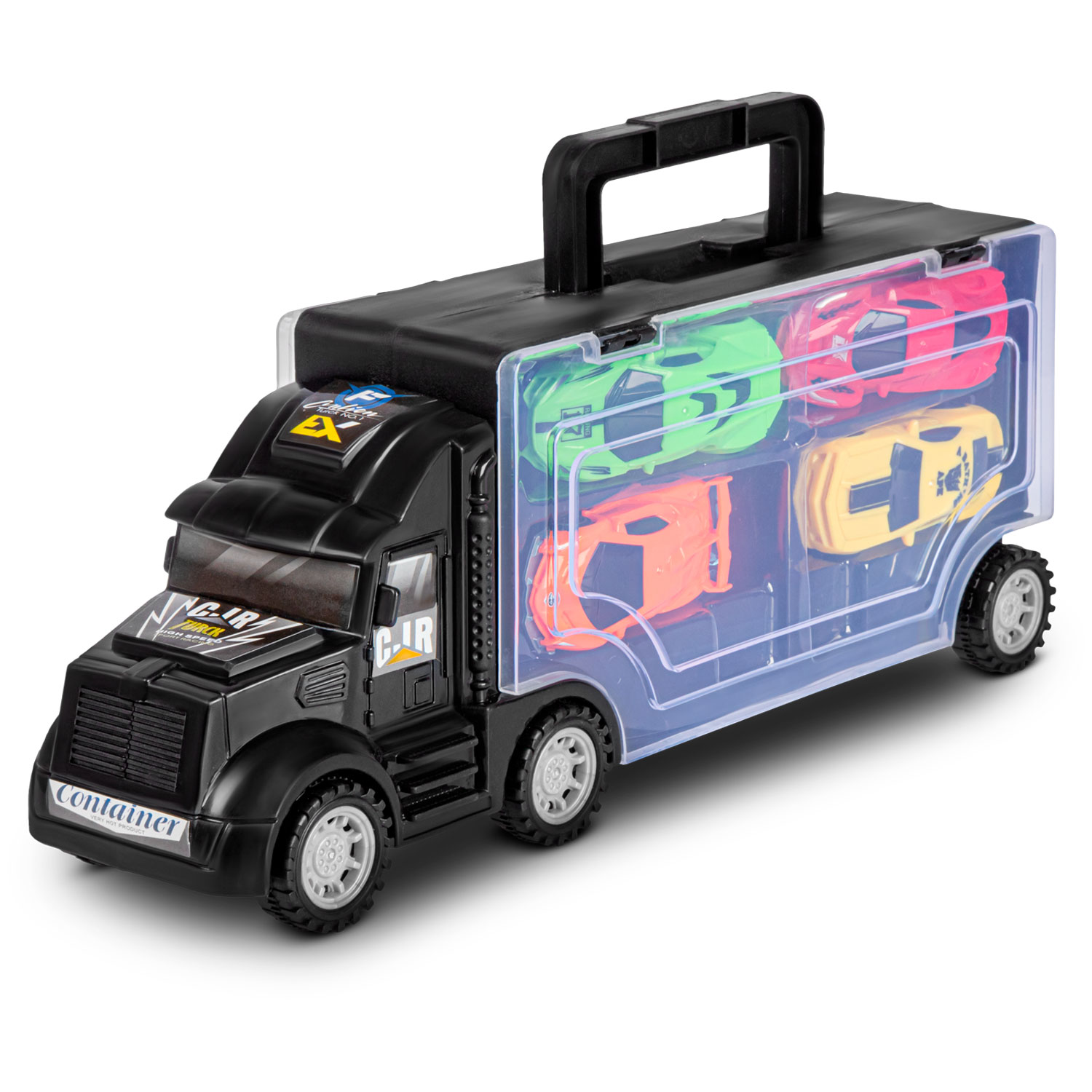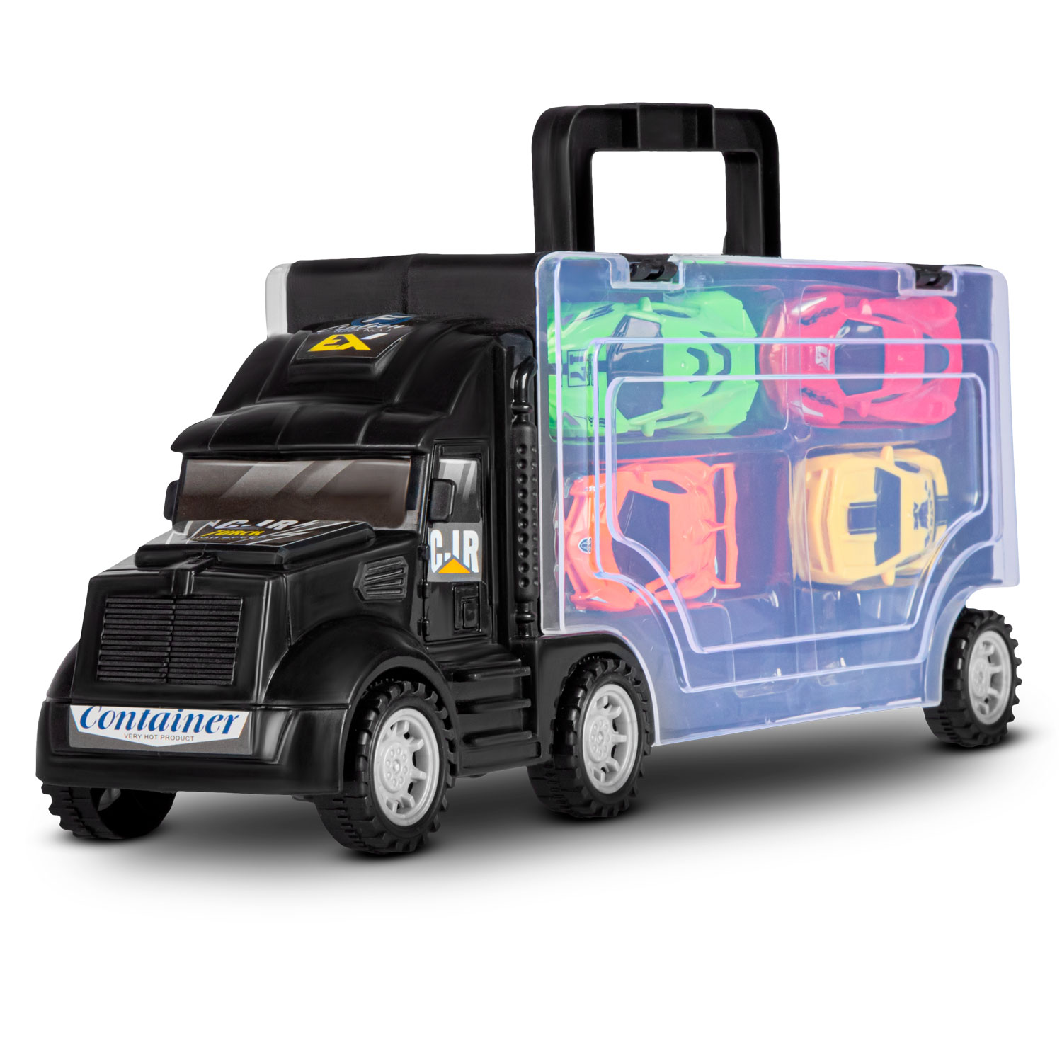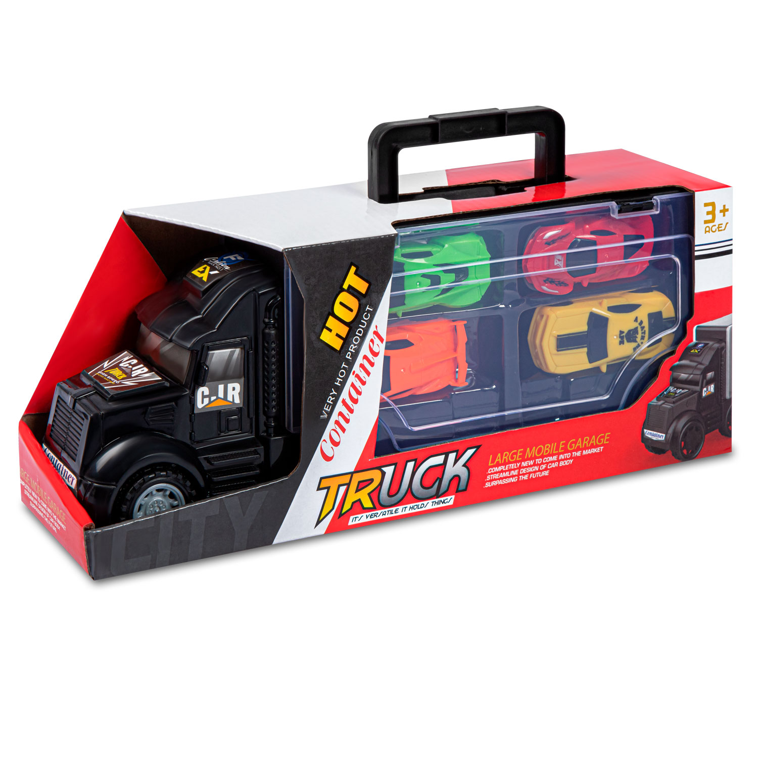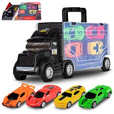 Автовоз-чемодан,в комплекте 4 машинки,свободн.ход колес,в/к 30,5*8,5*12см