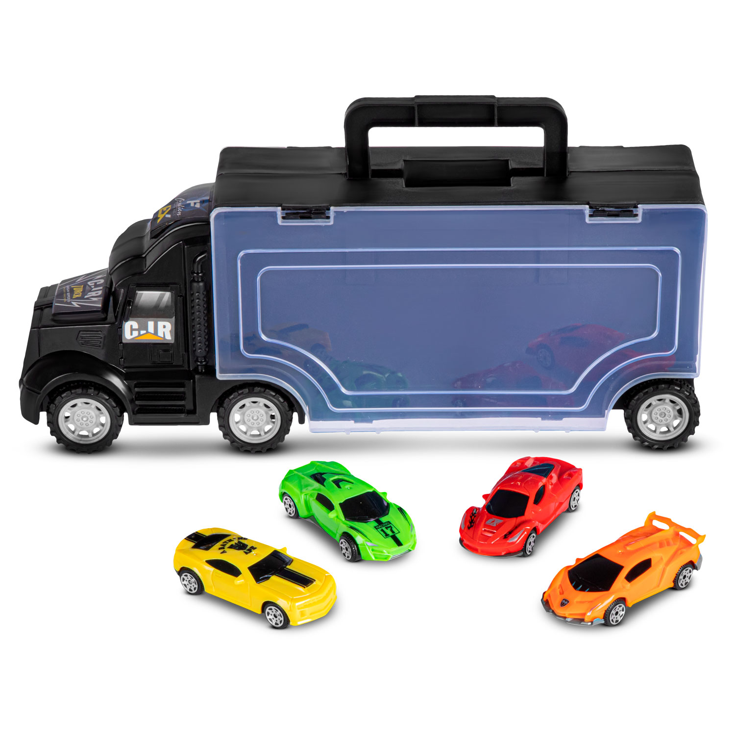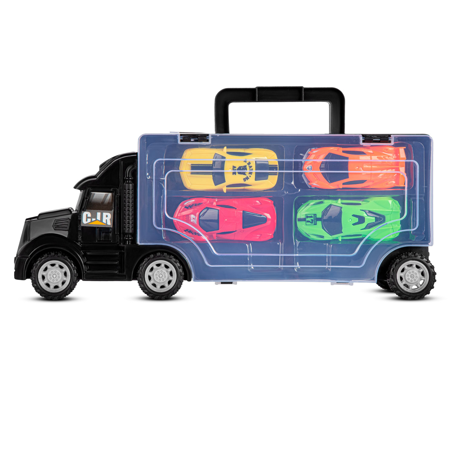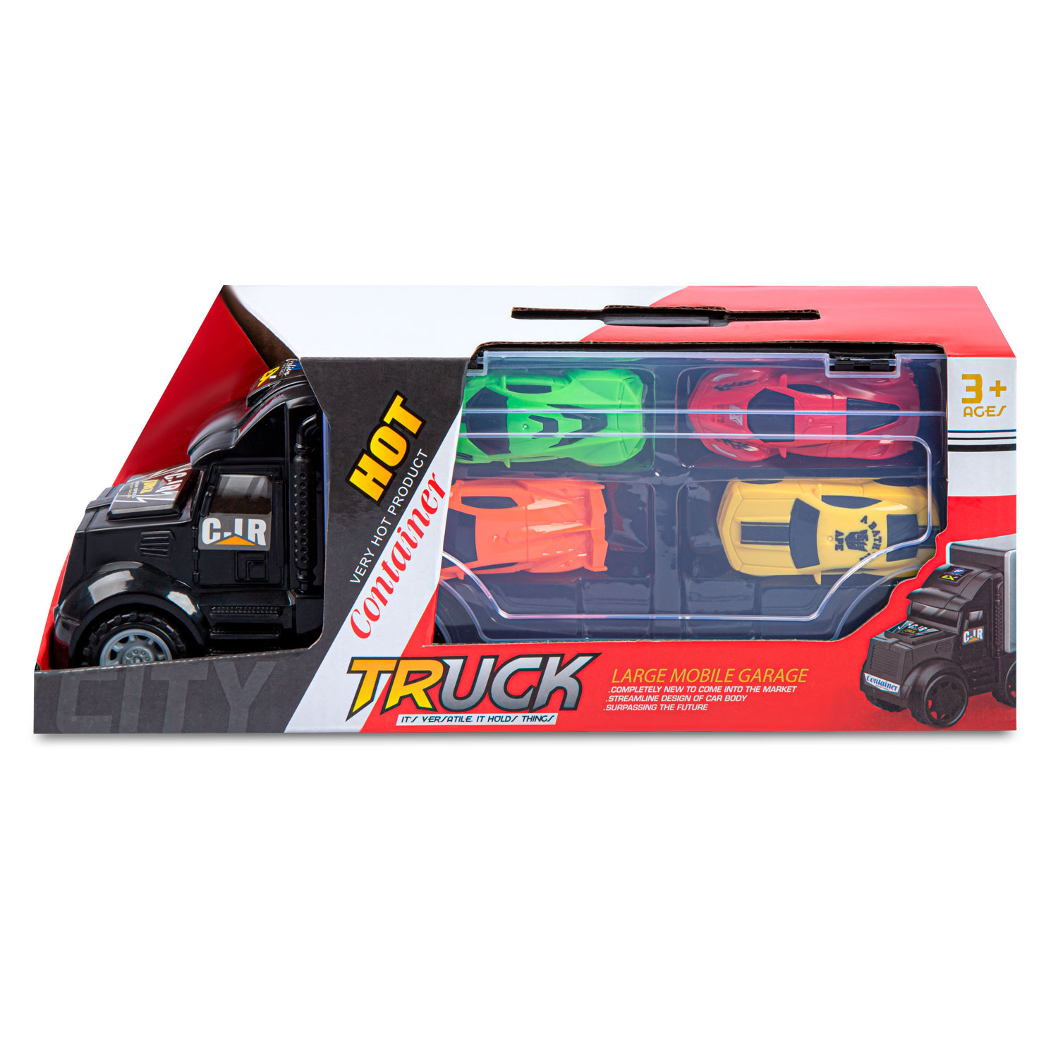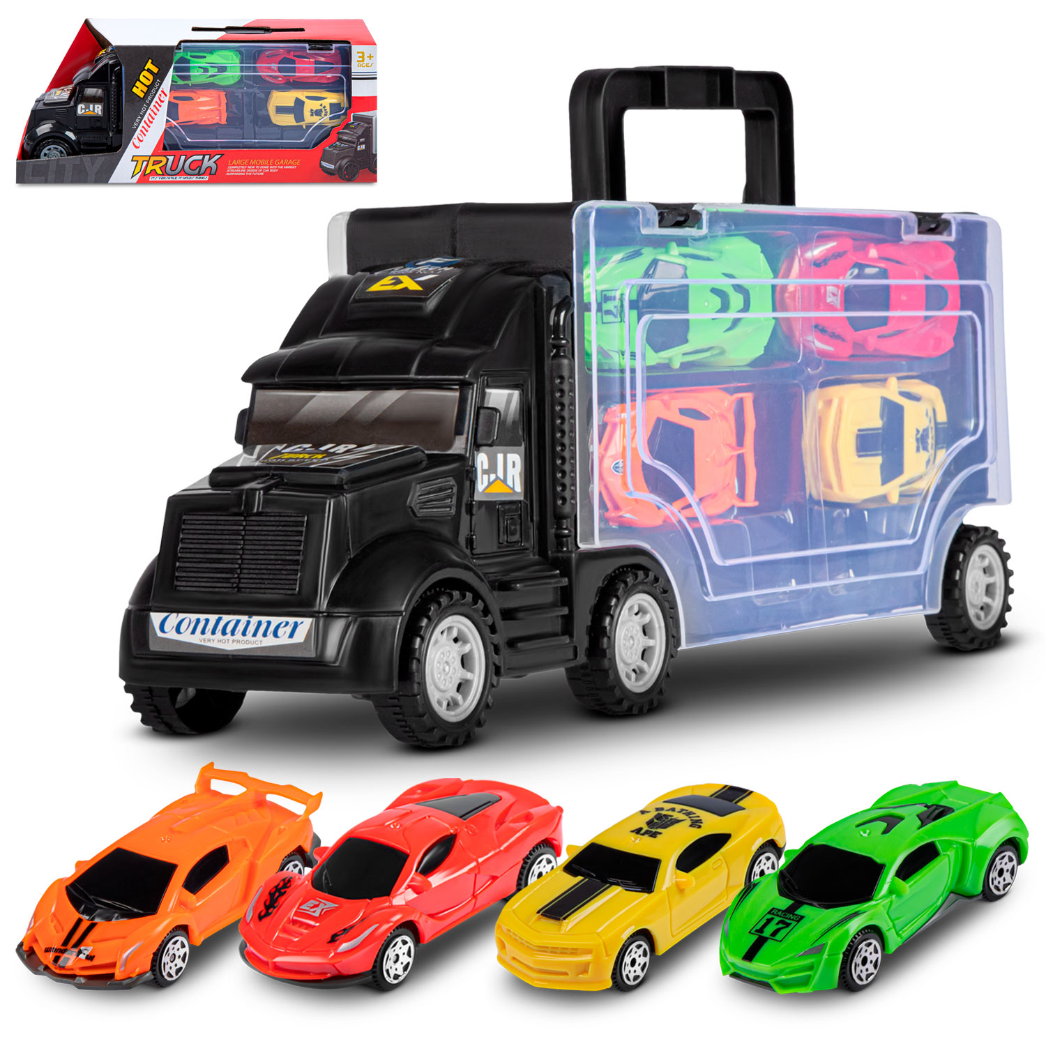 Автовоз-чемодан,в комплекте 4 машинки,свободн.ход колес,в/к 30,5*8,5*12см