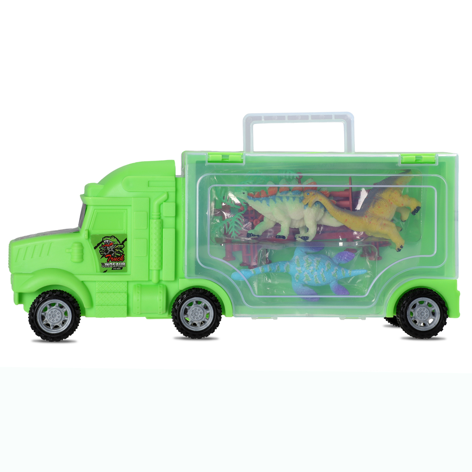 Автовоз с динозаврами, в компл. 3 динозавра, ограждение,имитация растения, в гофрокор. 18*7,3*11,8см