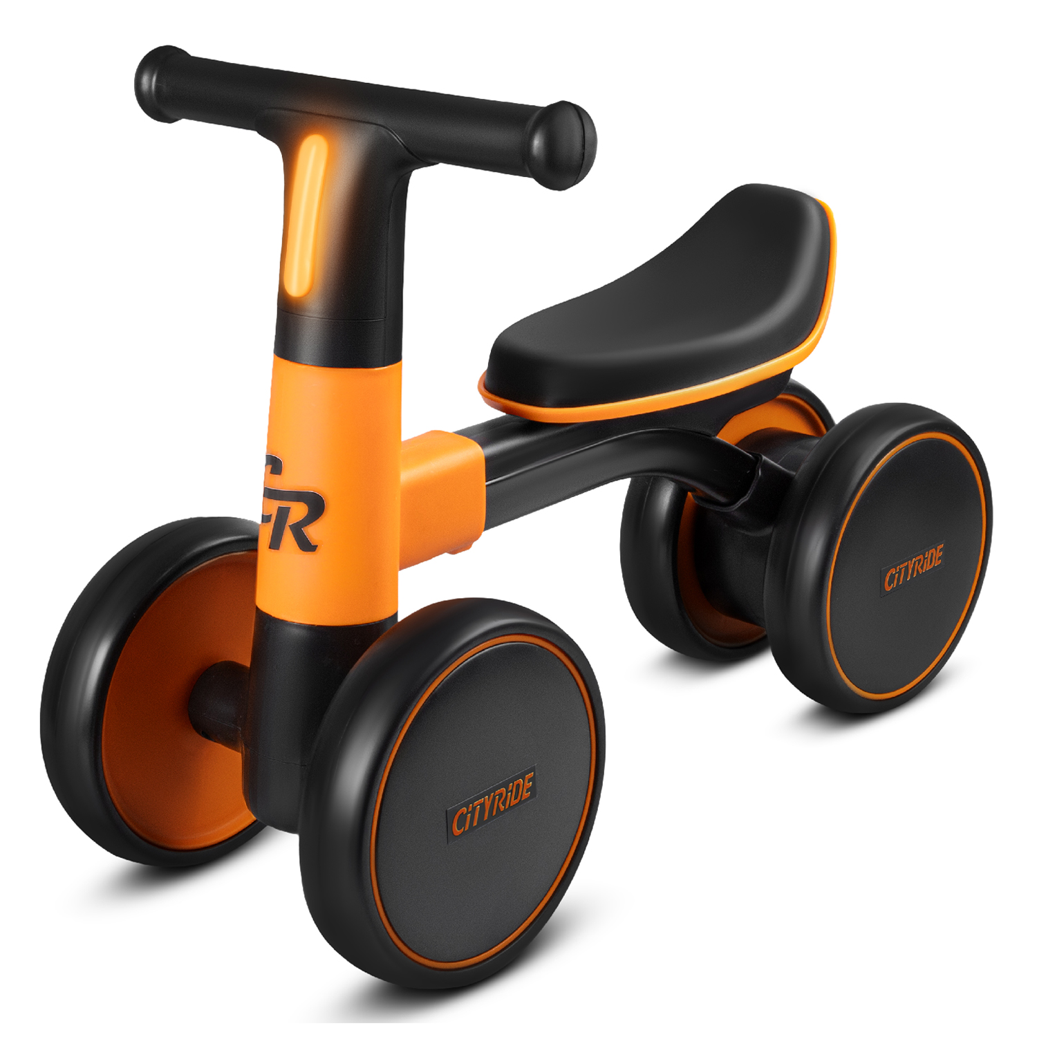 Беговел CITYRIDE, рама сталь, колеса пластик, музыка Шаинского, свет, оранжевый-черный, в/к