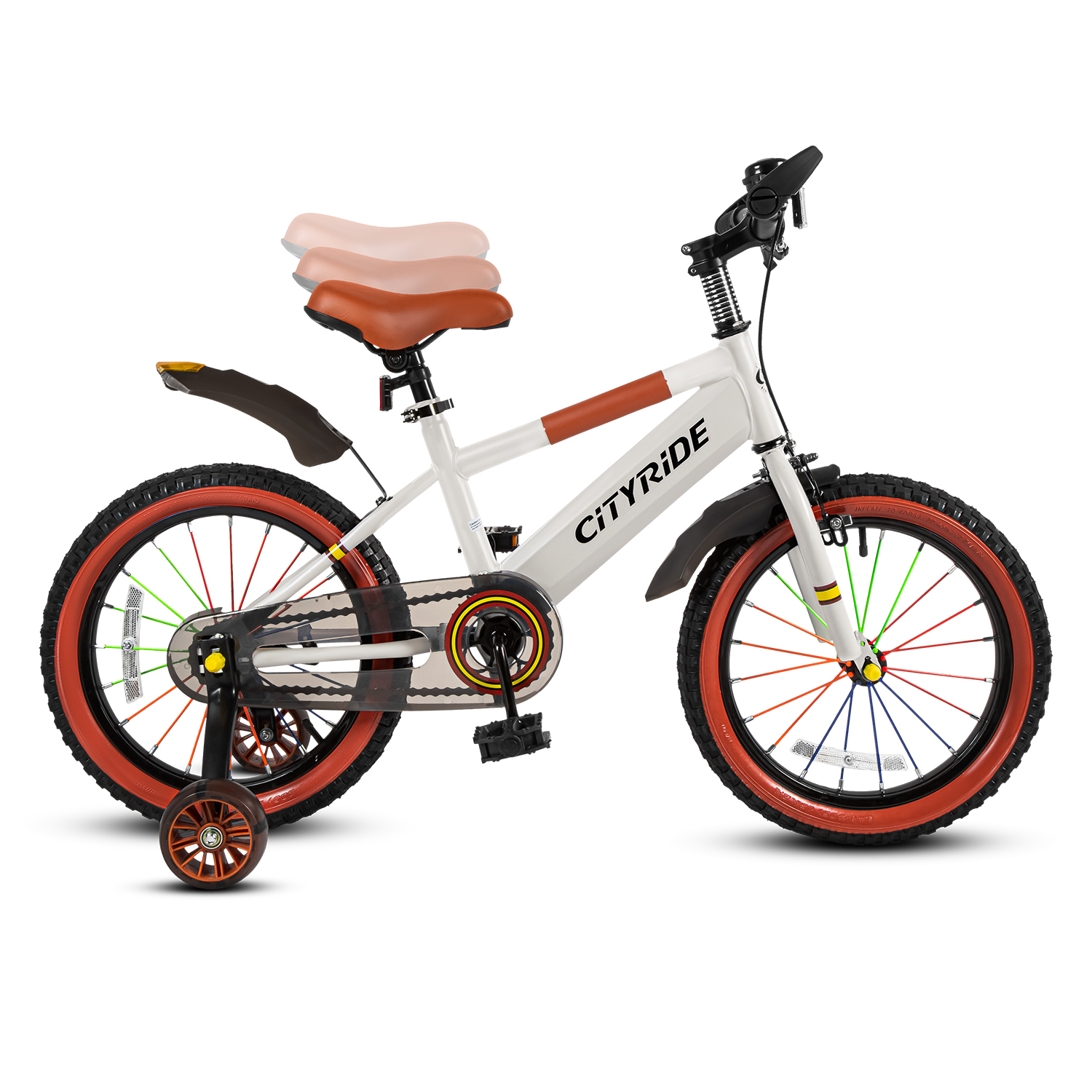 Велосипед двухколёсный CITYRIDE, модель CR-B2-07F52, колеса 16", рама сталь, колеса сталь, балансирные колеса со светом, маячок в заднем крыле, цвет белый