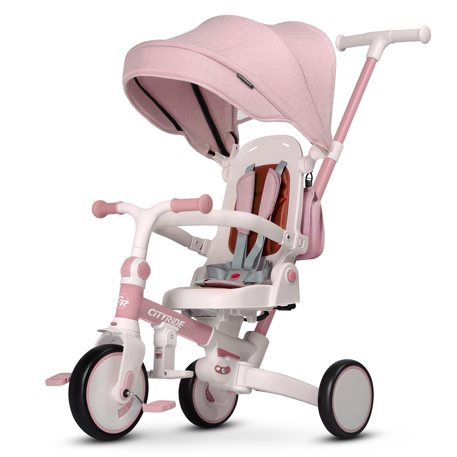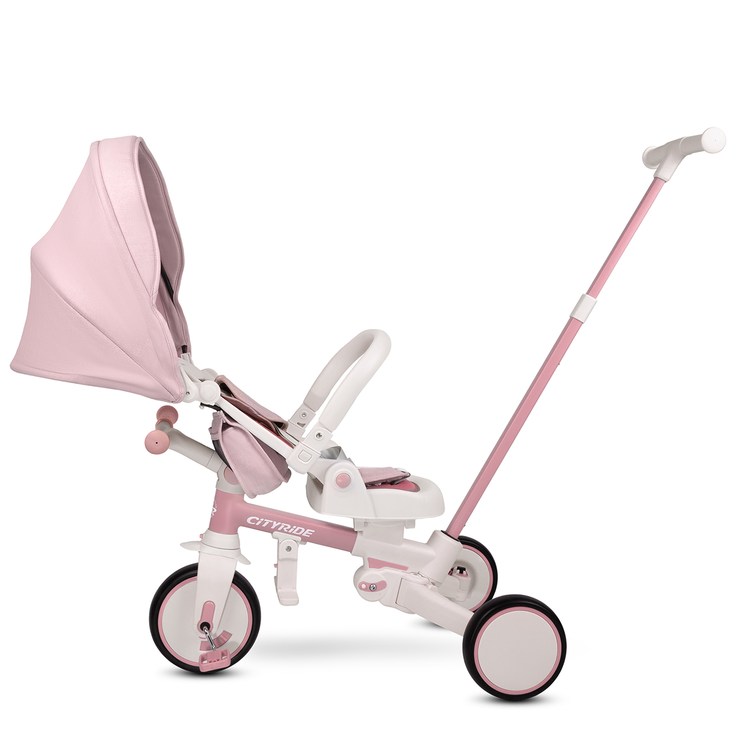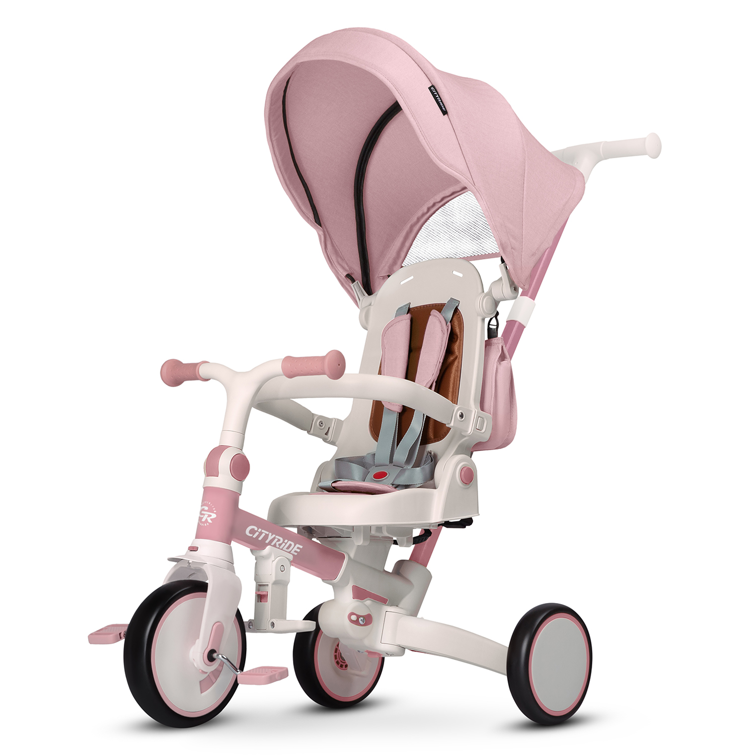 Детский трехколесный велосипед "CITYRIDE". Рама алюминий, может трансформироваться, подножки, колеса 8/7 EVA, капюшон, род. ручка, розовый