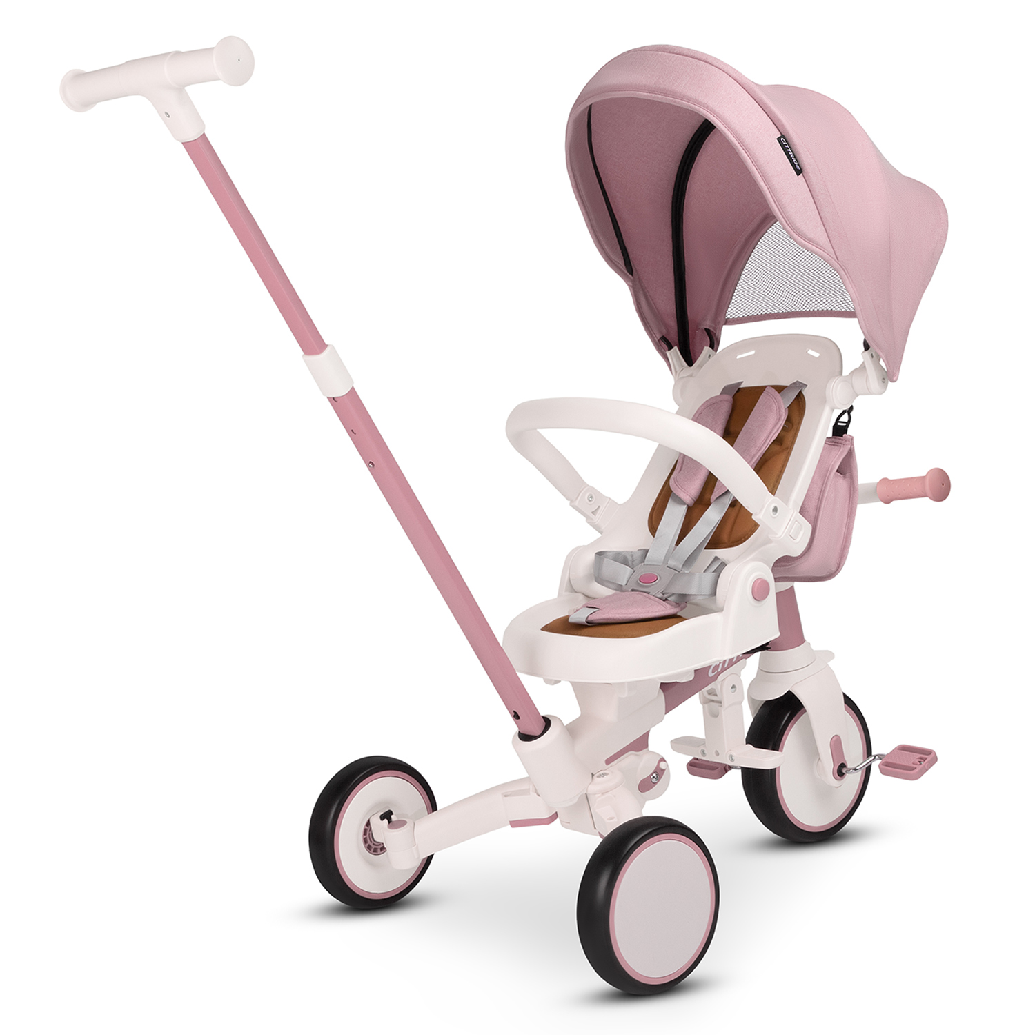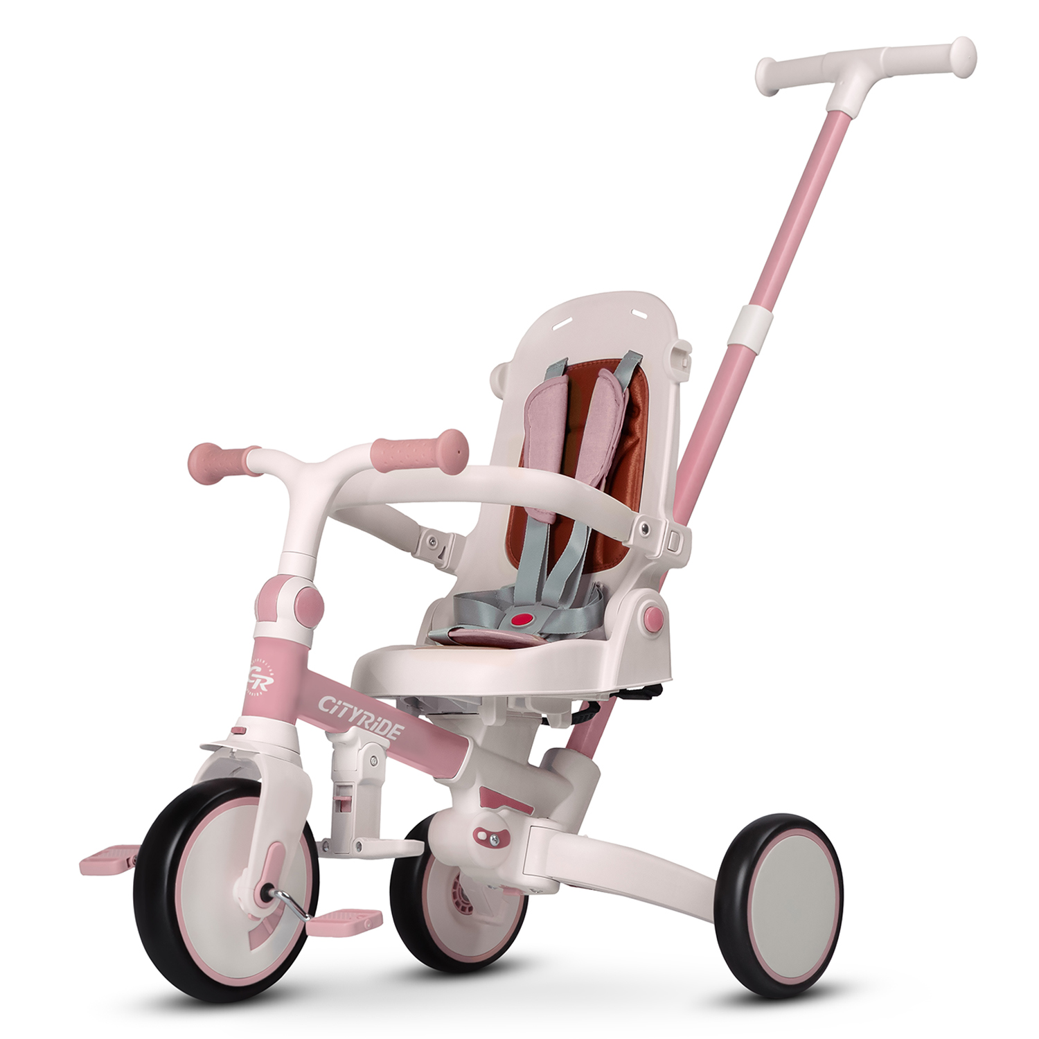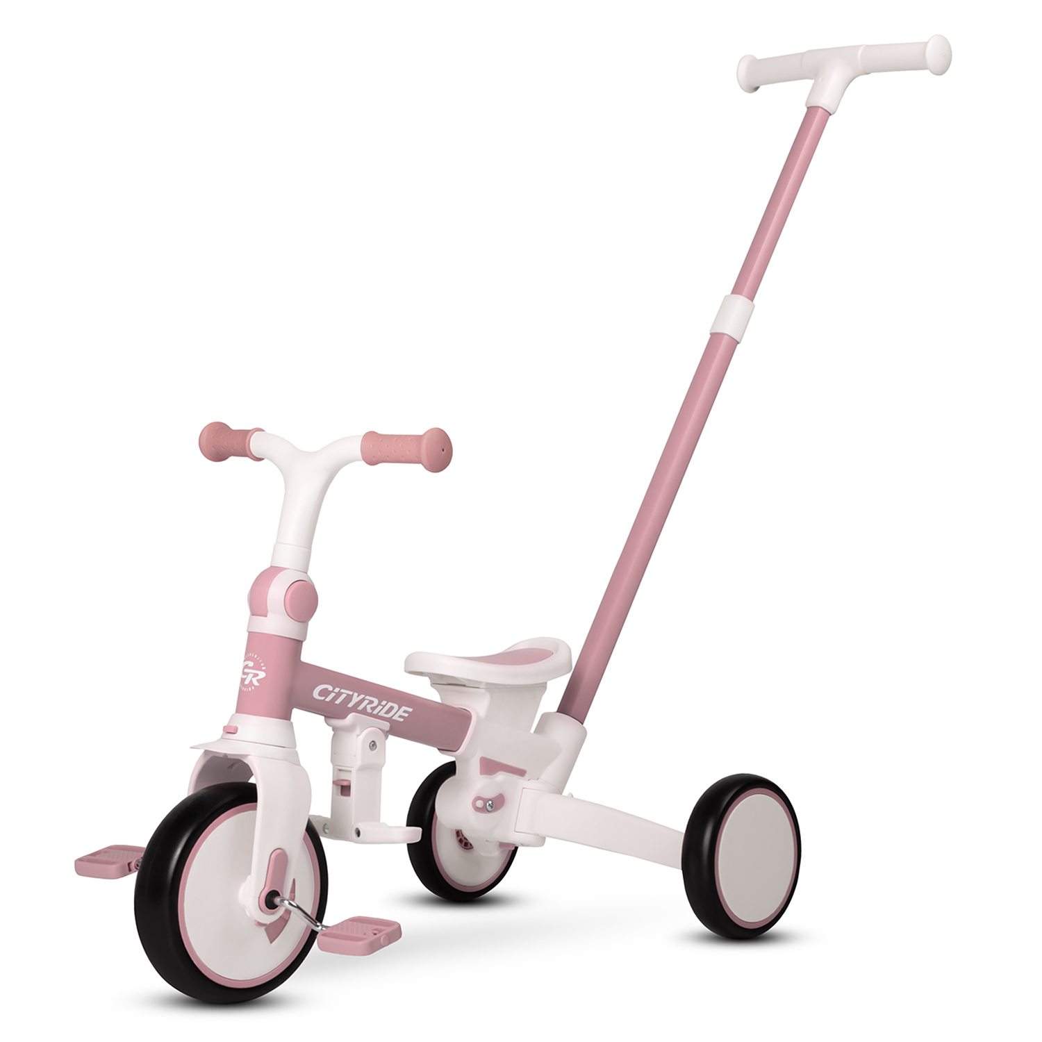 Детский трехколесный велосипед "CITYRIDE". Рама алюминий, может трансформироваться, подножки, колеса 8/7 EVA, капюшон, род. ручка, розовый