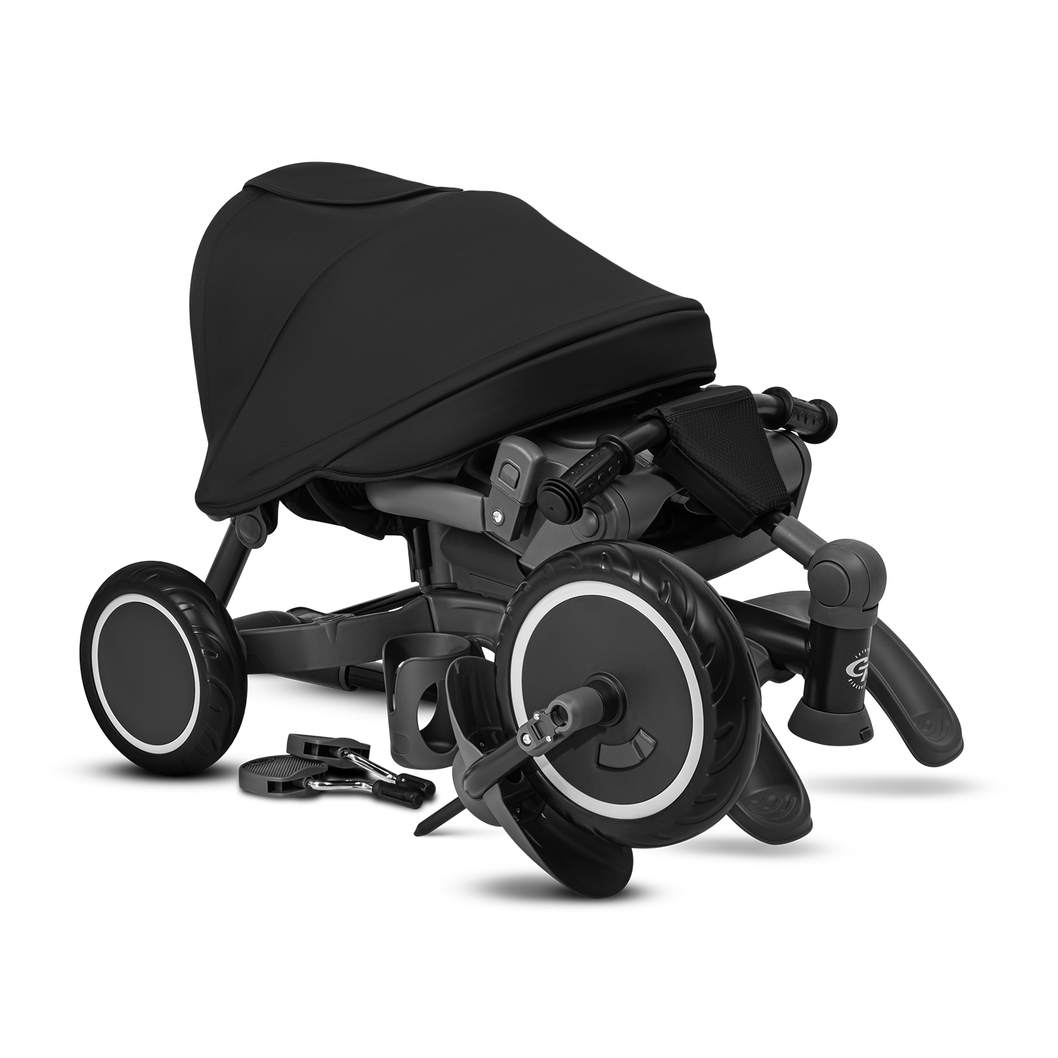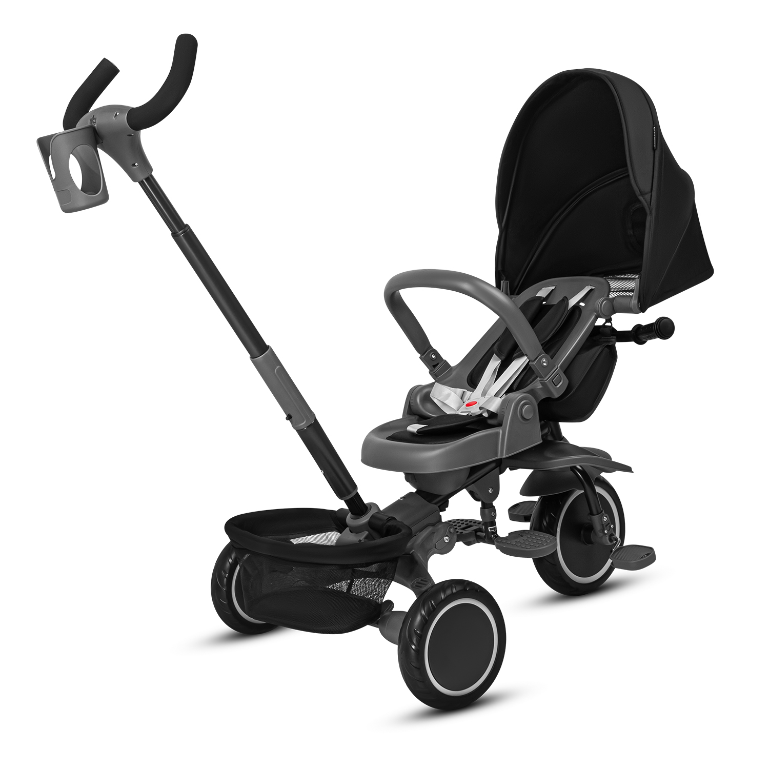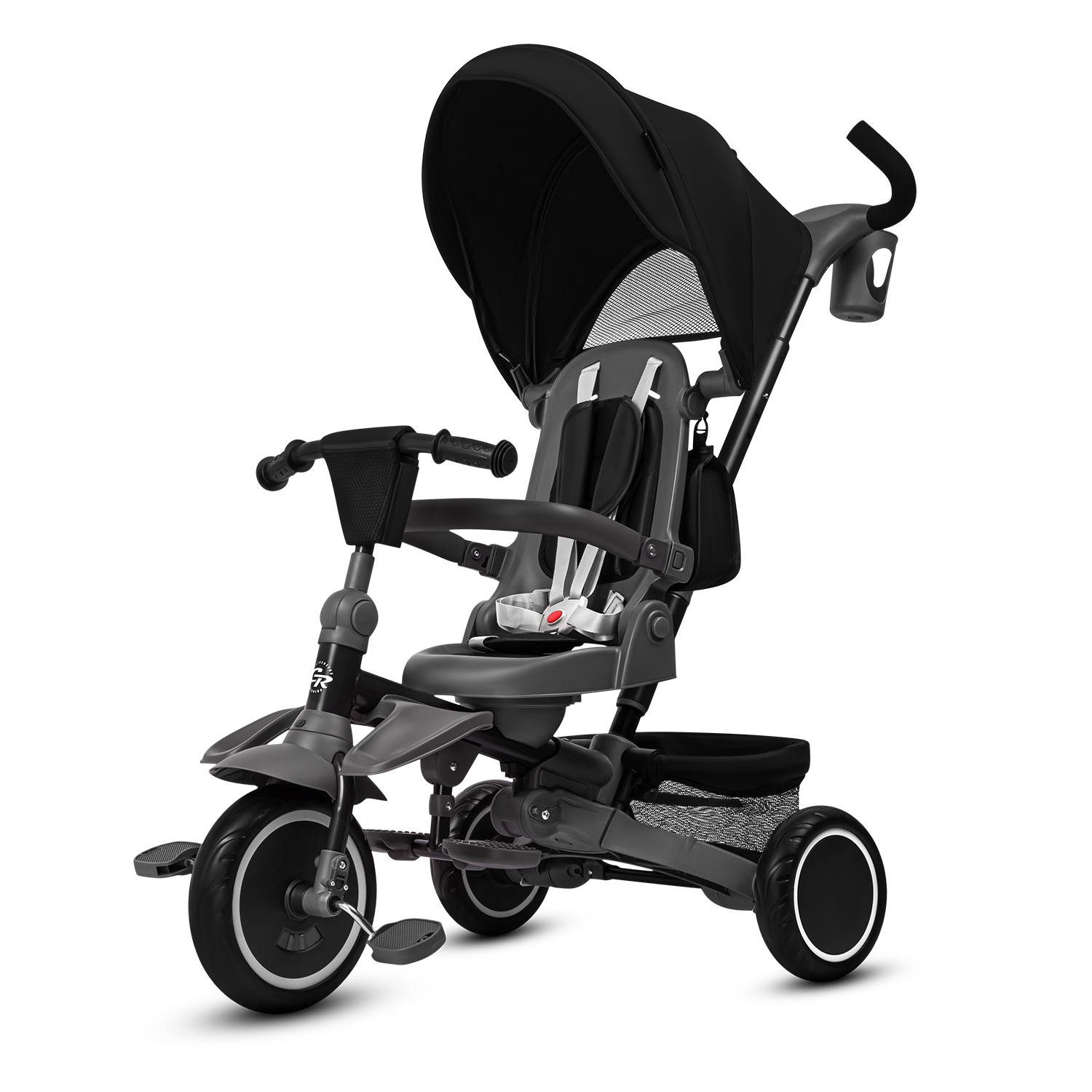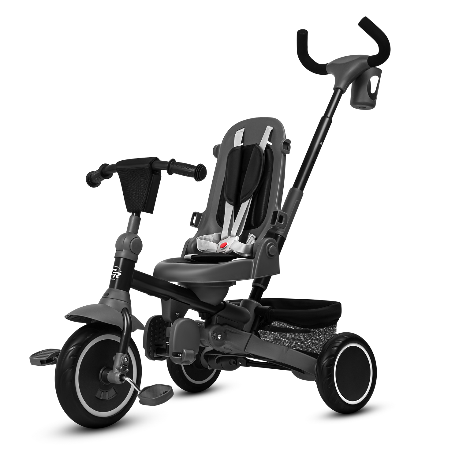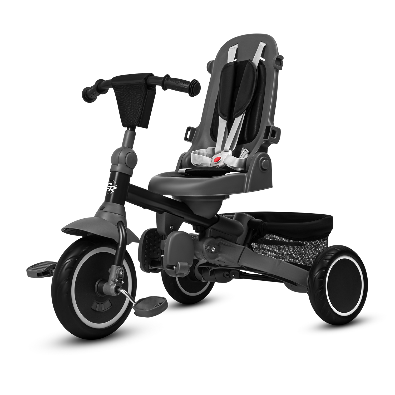 Детский 3х колесный велосипед "CITYRIDE". Сиденье поворачивается на 360°, подножки, колеса 9,5/7,5 EVA, капюшон, род. ручка, серый