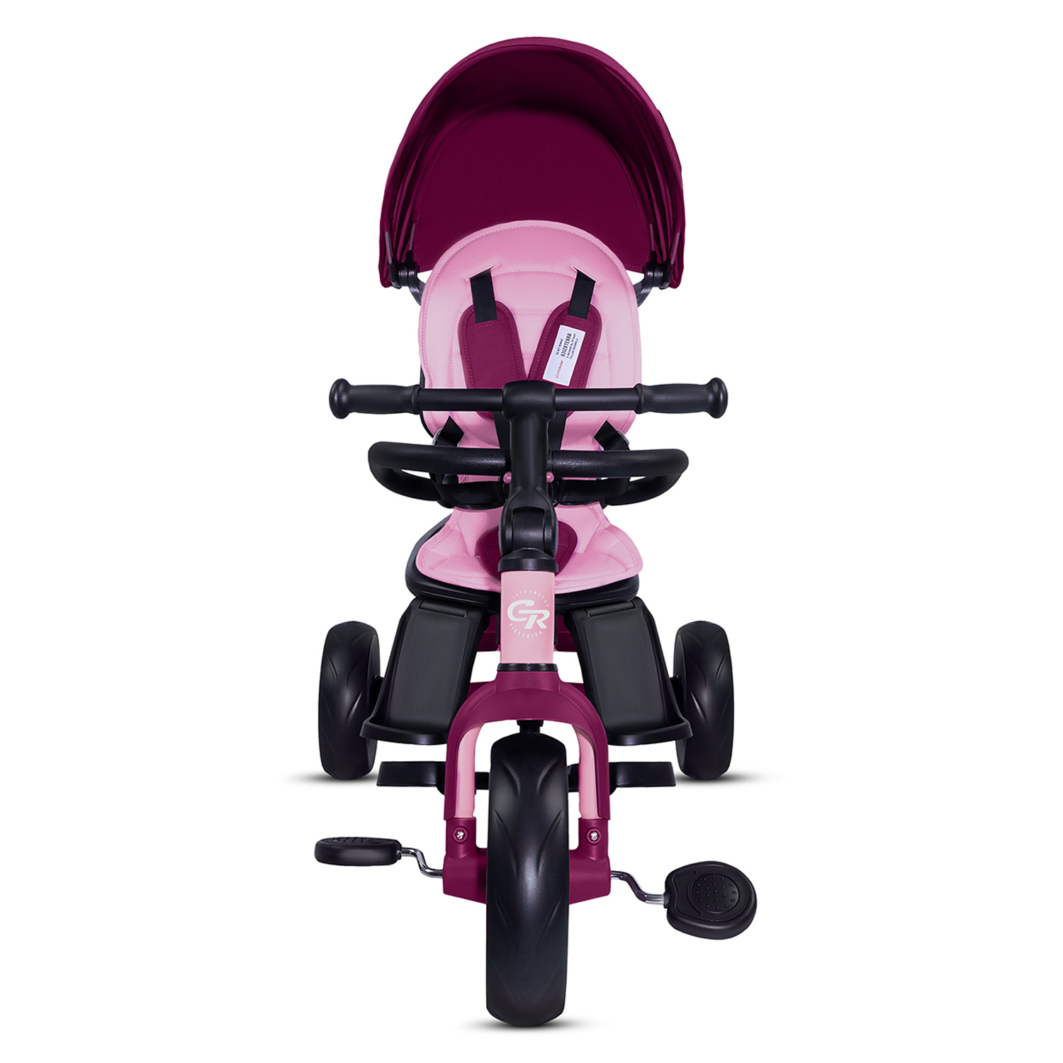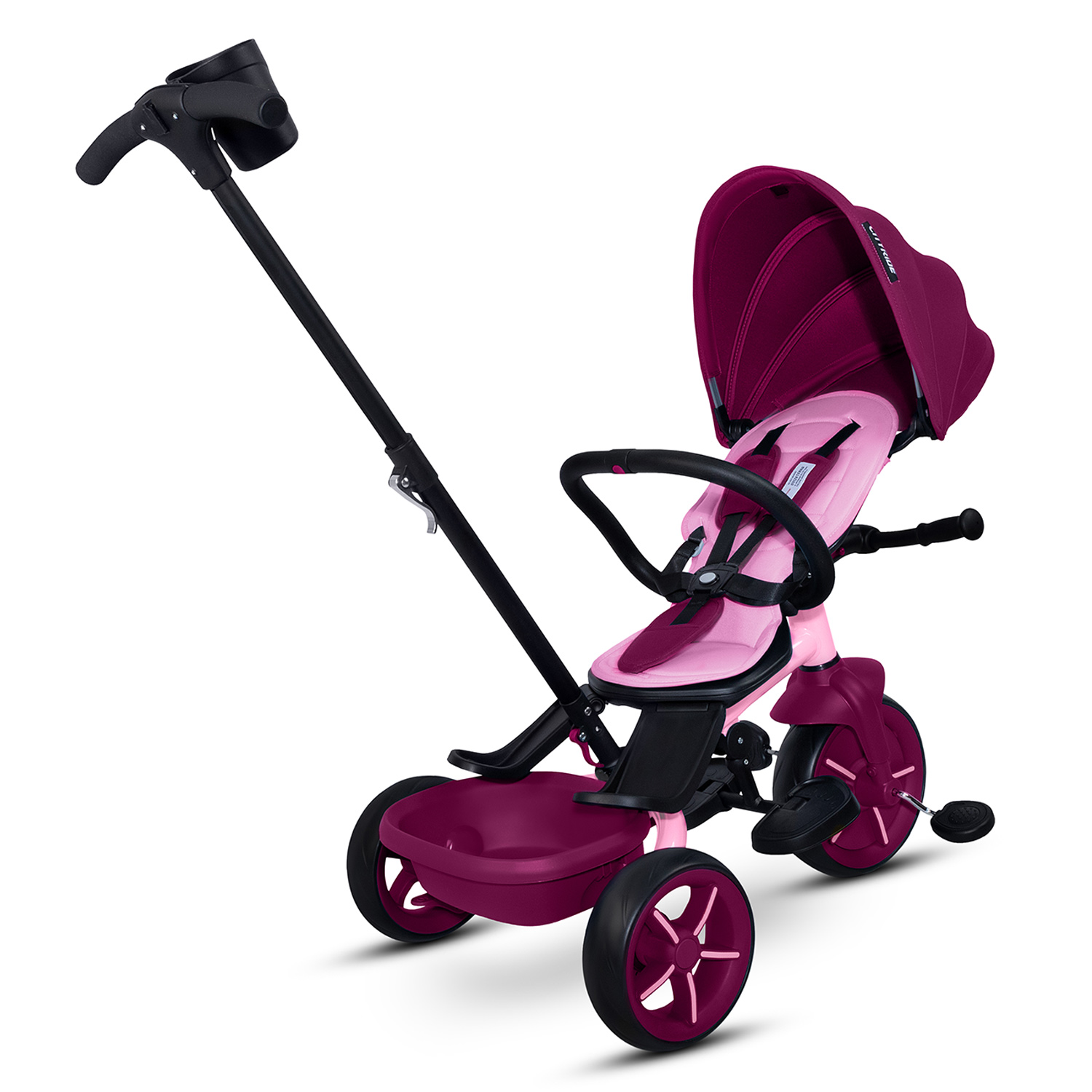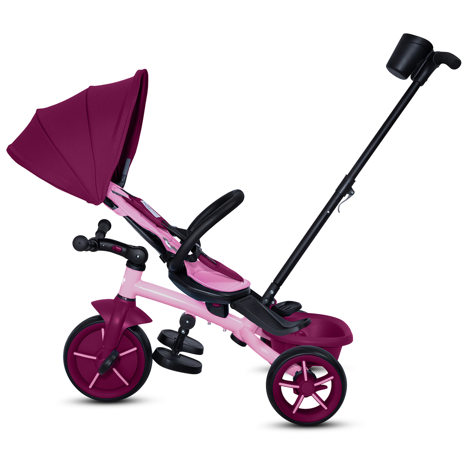 Детский трехколесный велосипед "CITYRIDE XTERRA". Рама сталь, сиденье съемное, складная крыша D600, подножки, колеса 11/9 EVA, корзина, подстаканник, розовый