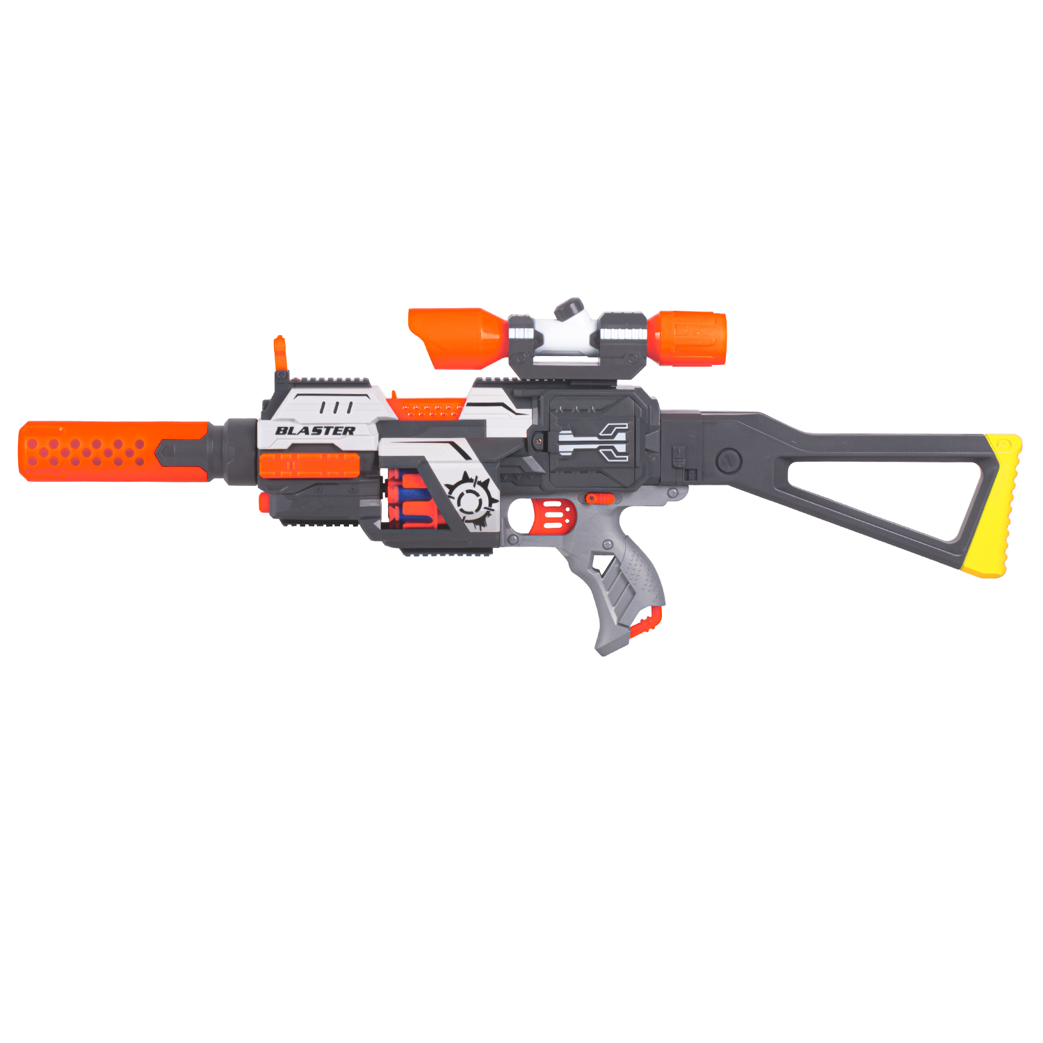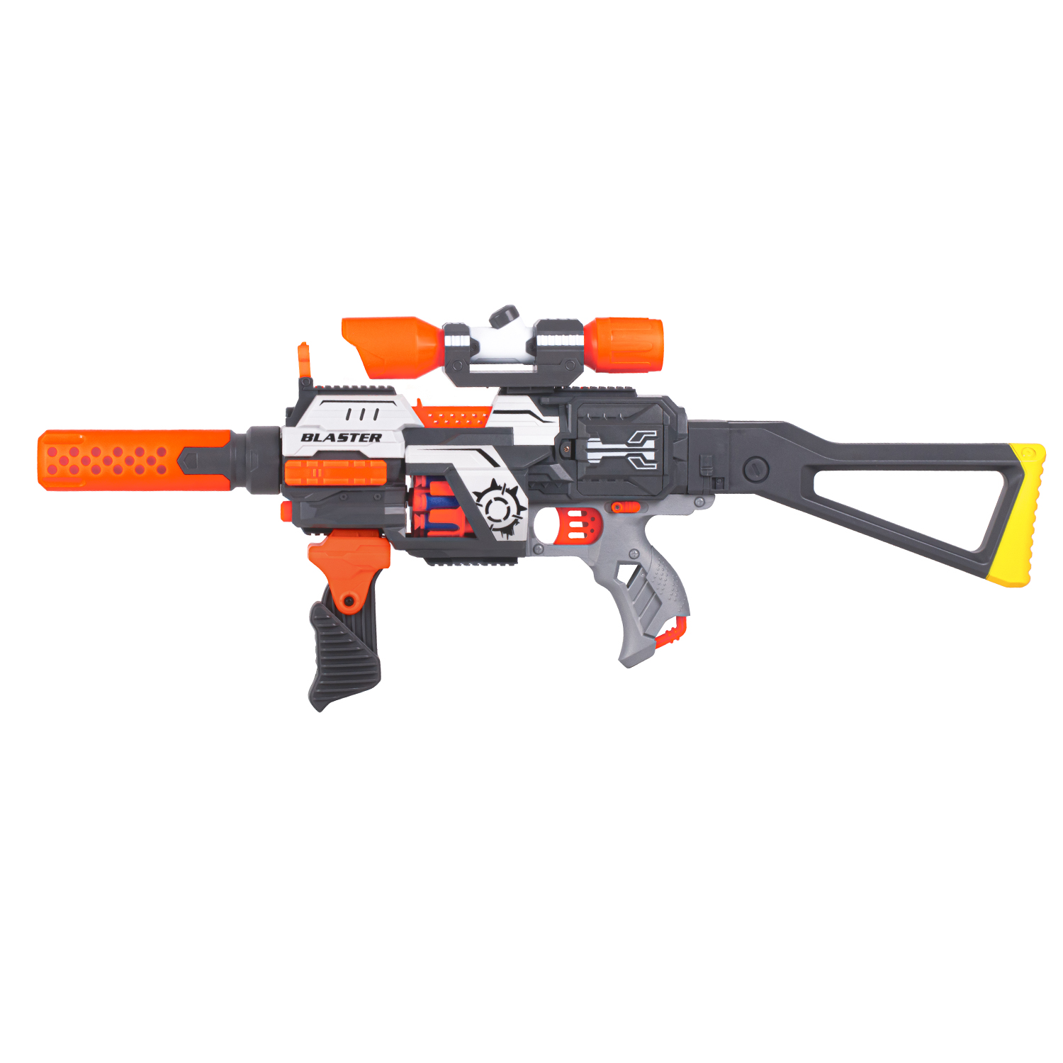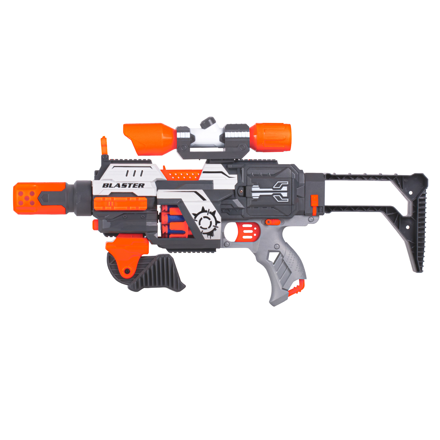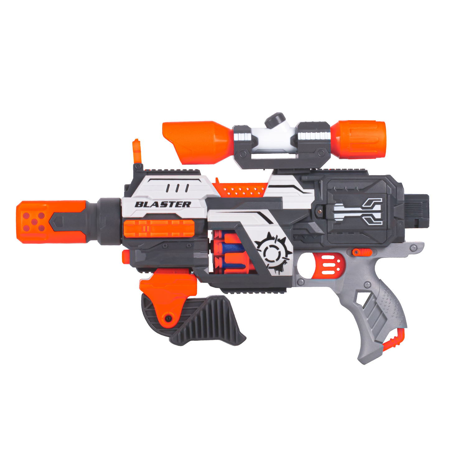 Бластер с мягкими пулями, на бат., 30 пуль в компл., барабанный магазин, в/к 43,5*10,5*22,5см