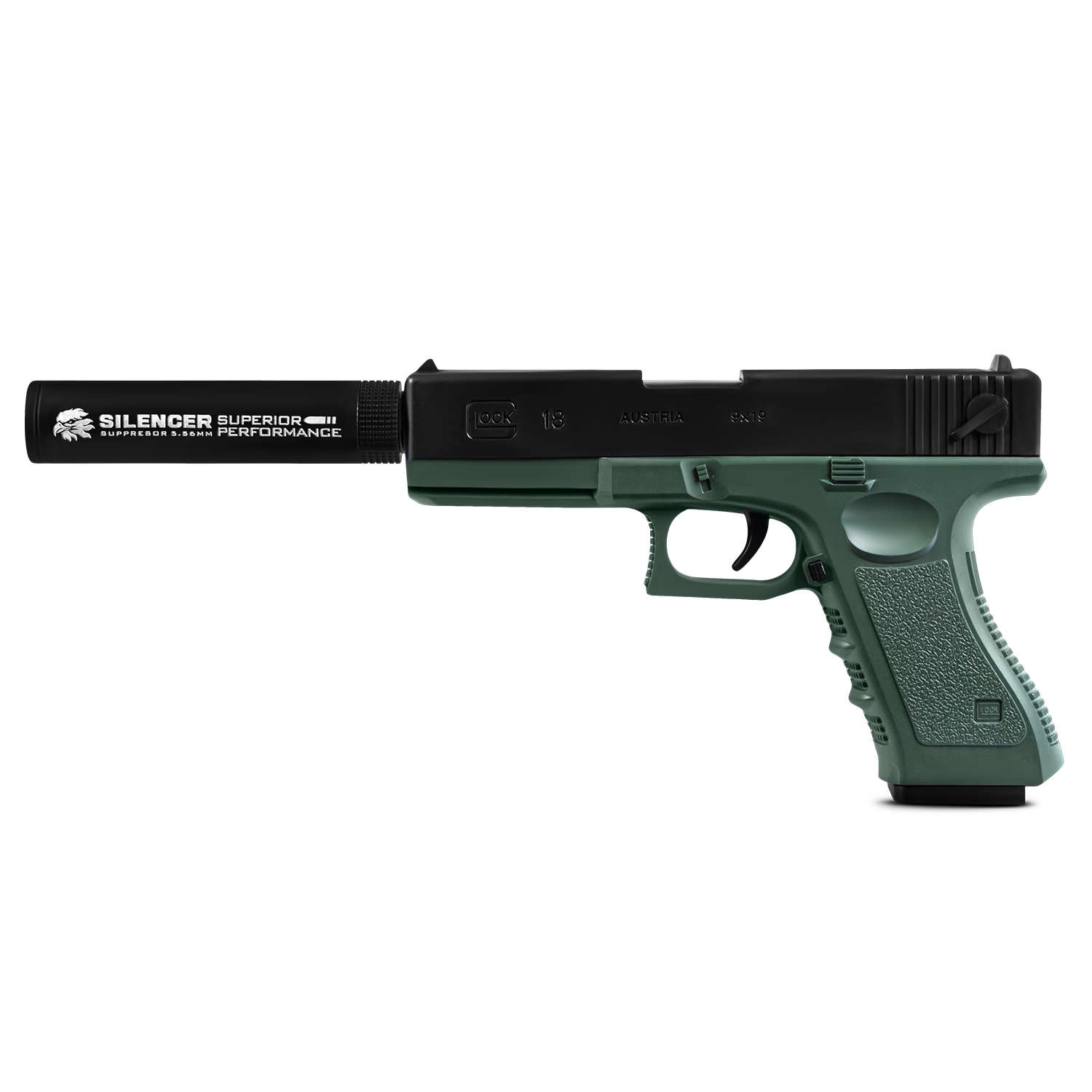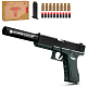 Пистолет с мягкими пулями, с глушителем, пули с гильзами, зелёный/чёрный, 25*17*7 см, в/к