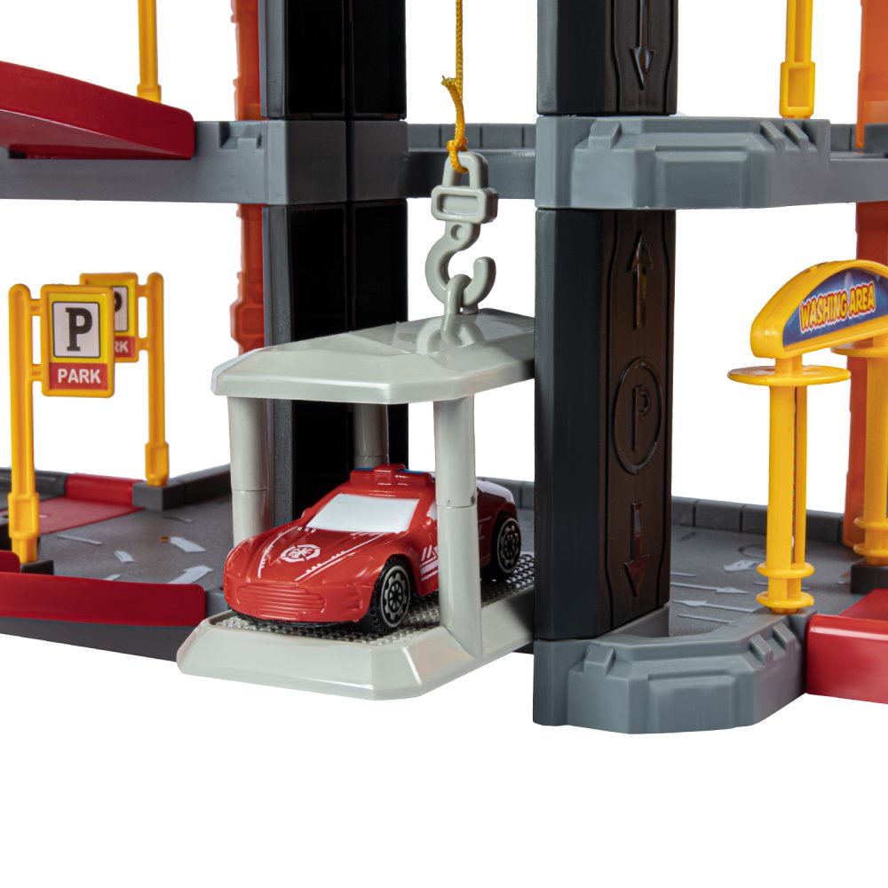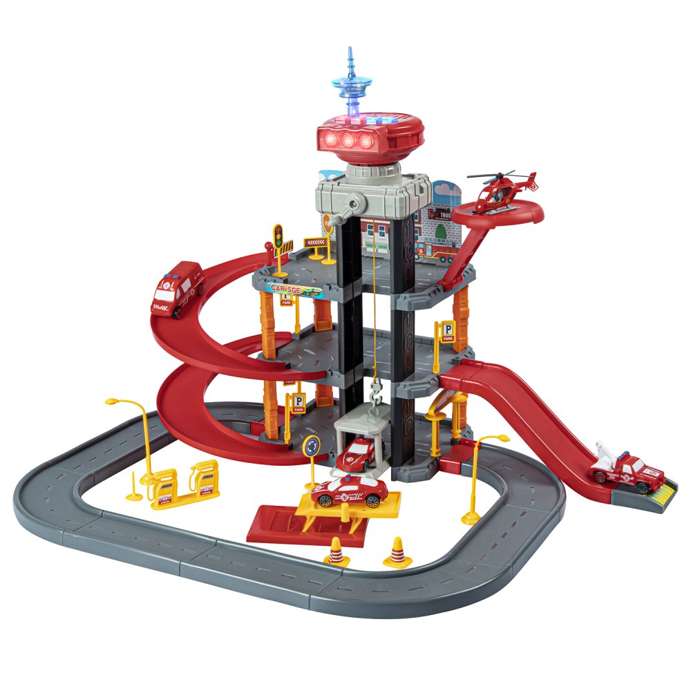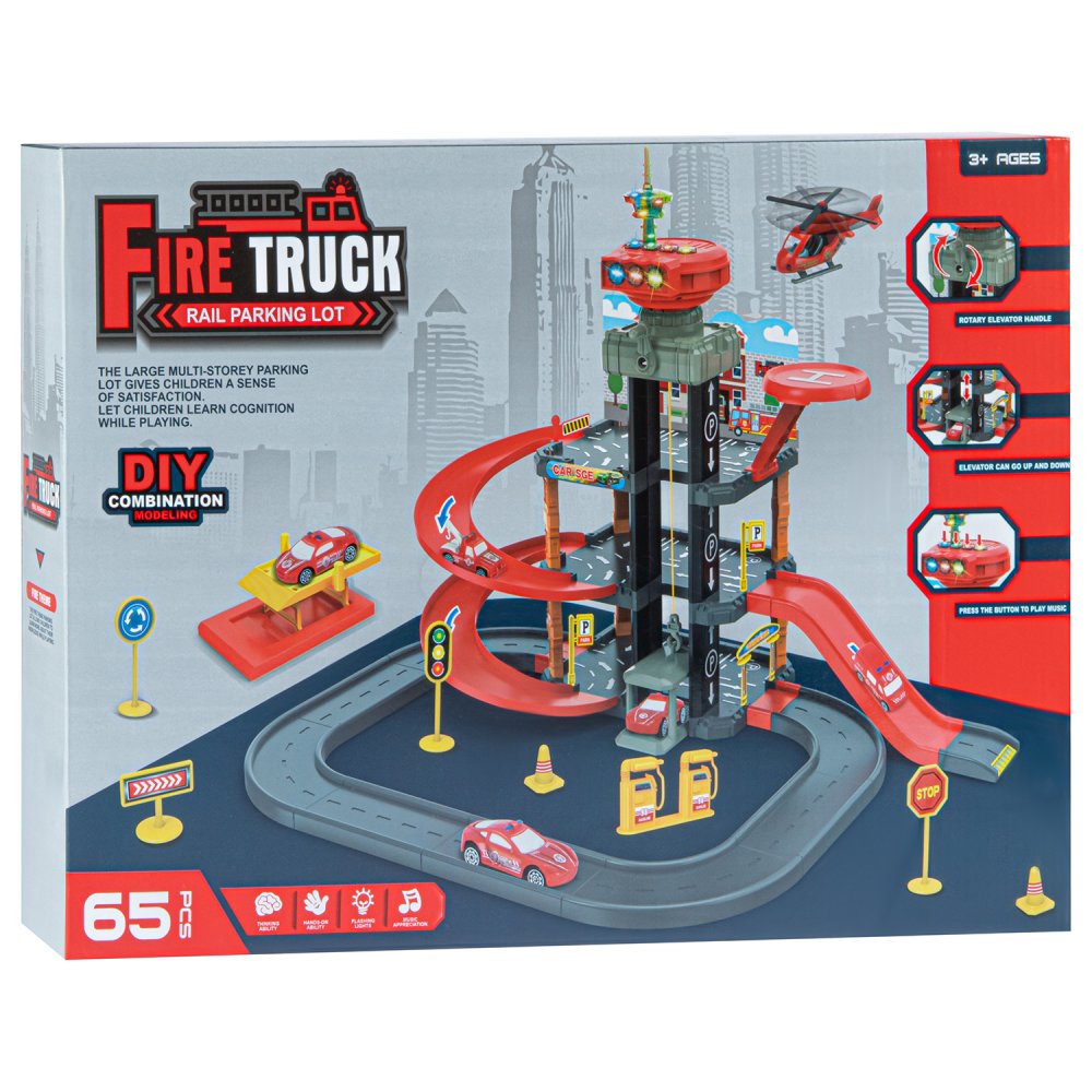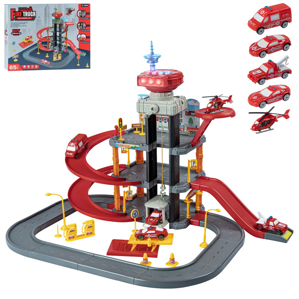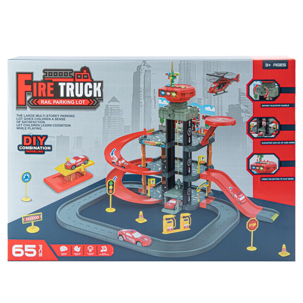 Парковка "Пожарная" с лифтом, свет, звук, ручной механизм лифта, в компл. машинки, вертолет, на бат., в/к 45*6,5*31см