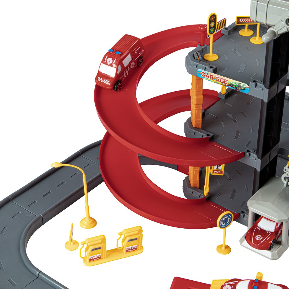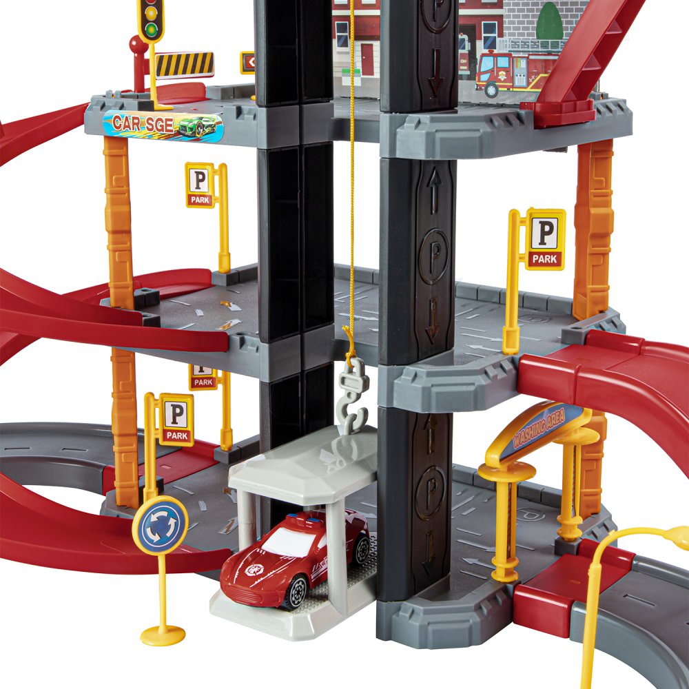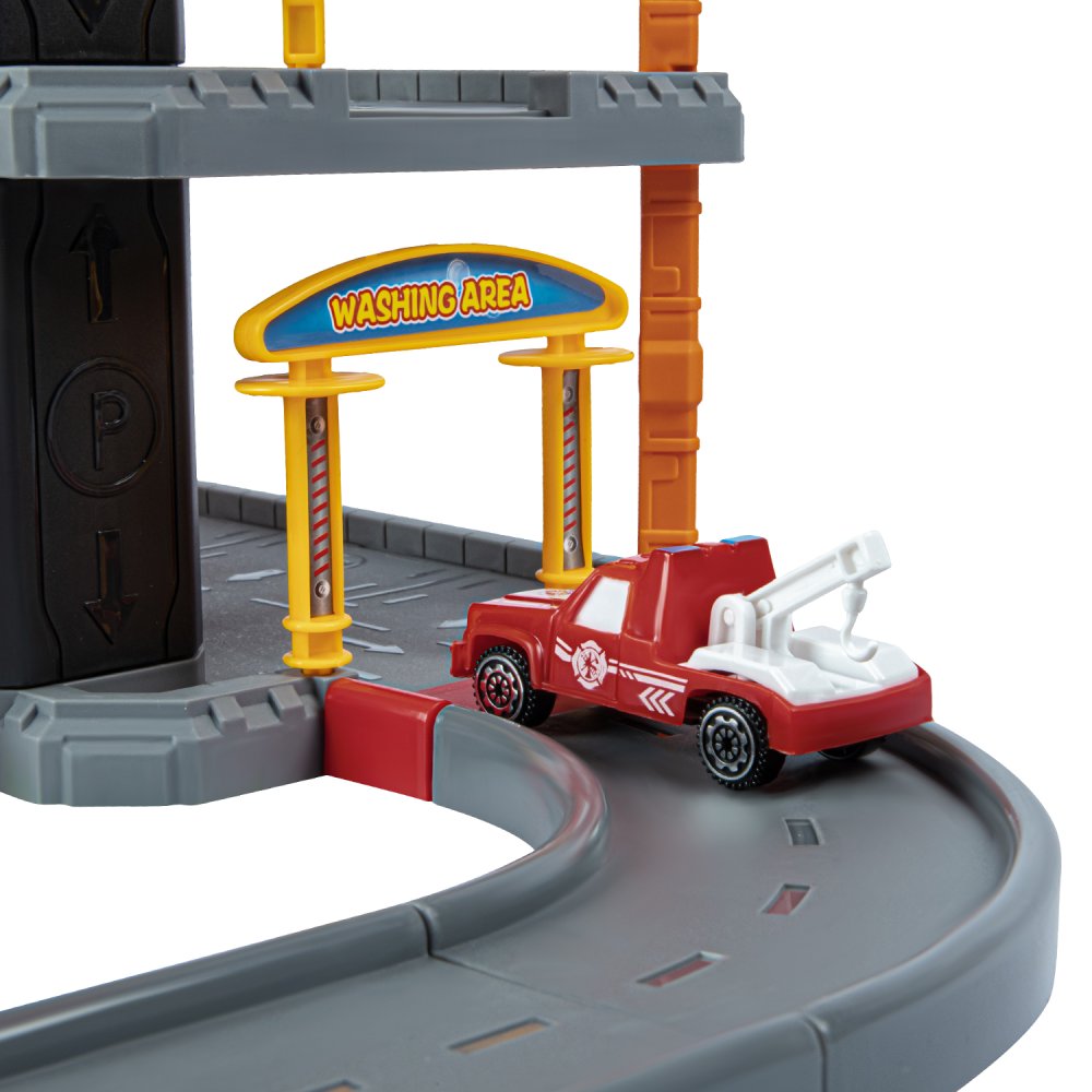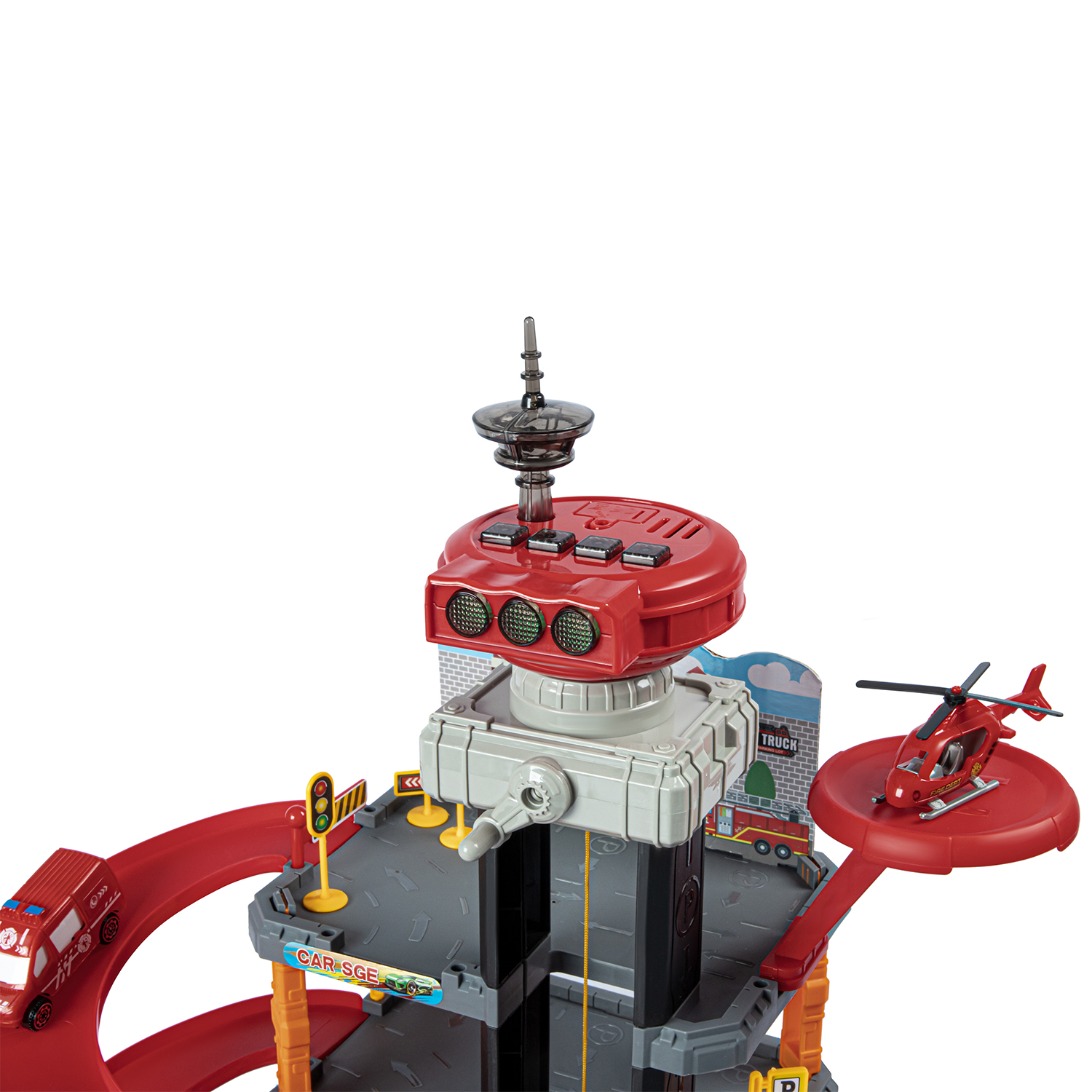 Парковка "Пожарная" с лифтом, свет, звук, ручной механизм лифта, в компл. машинки, вертолет, на бат., в/к 45*6,5*31см