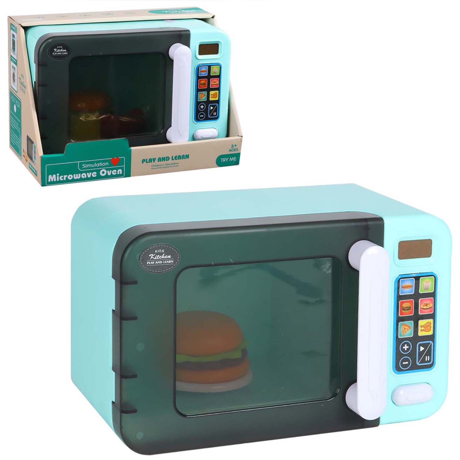 Игровой набор "Микроволновая печь" обязательно понравится маленькой хозяюшке! В комплект входят: микроволновая печь, 2 булочки для гамбургера, котлета, салатный лист, булочка для хот-дога, сосиска и картошка фри. Игрушки выполнены очень реалистично! На микроволновке можно выставлять таймер, на маленьком экранчике высвечиваются цифры. При нажатии сенсорных кнопочек игрушка воспроизводит реалистичные звуки. Игрушка позволяет принять участие в соотвествующей сюжетно-ролевой игре, развить мелкую моторику и фантазию. Батарейки: 3AA/не входят в игрушку Рекомендуемый возраст: 3+ Размер упаковки: 28х19х16,5 см
