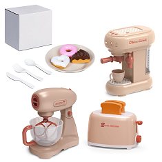 Набор игрушечной бытовой техники "Кофеварка, миксер, тостер" бежевая, 3 шт, на бат., в б/к