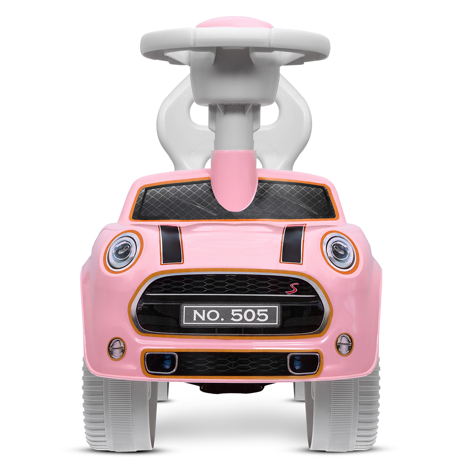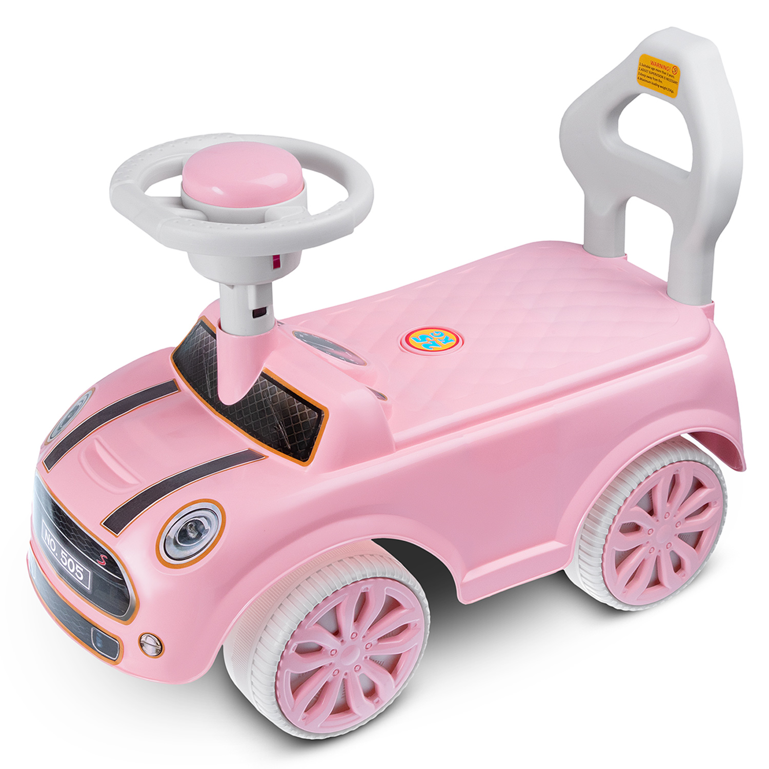 • цветные наклейки, стильный и реалистичный дизайн, имитация фар, литых дисков, руль с пищалкой сделают толокар по-настоящему любимой игрушкой;
