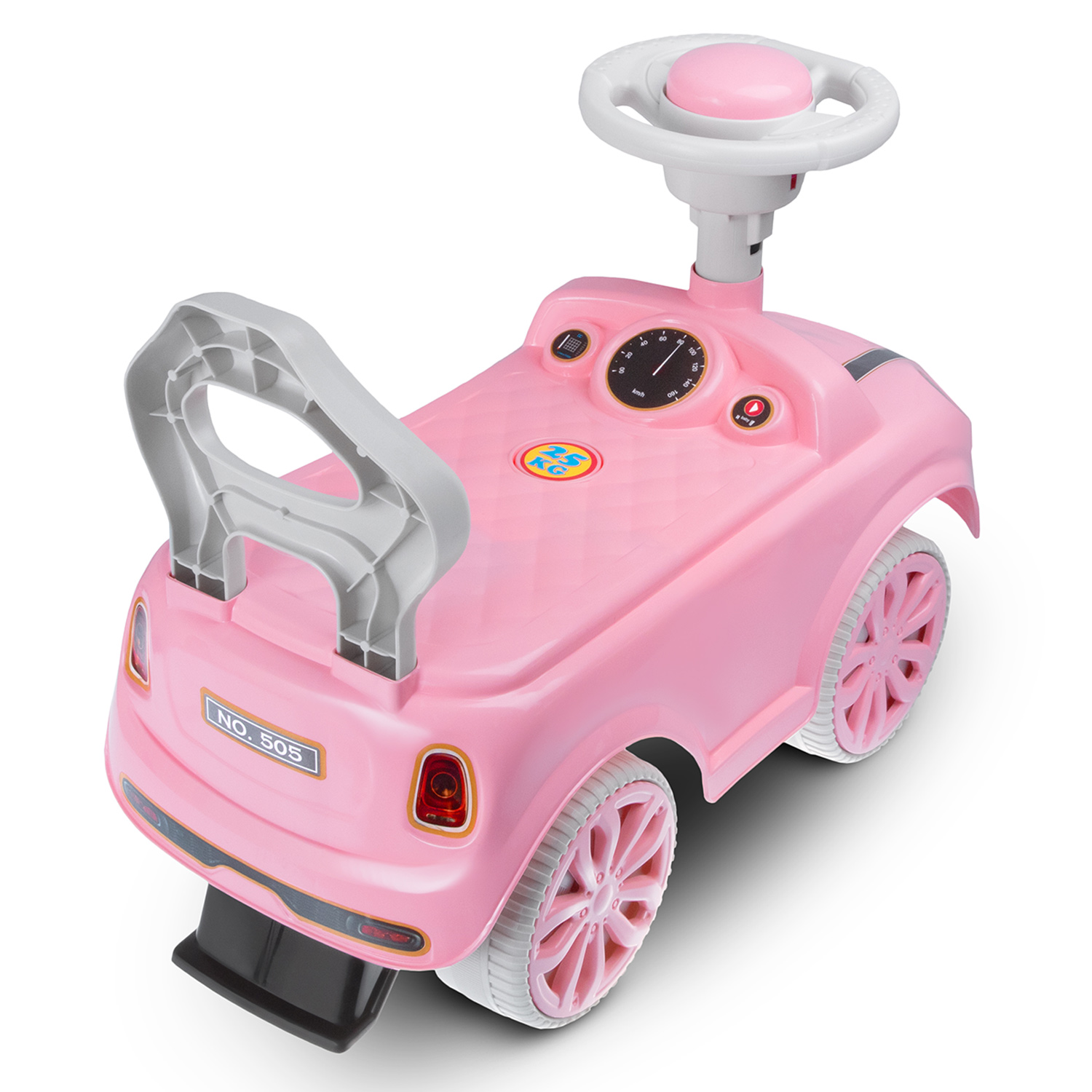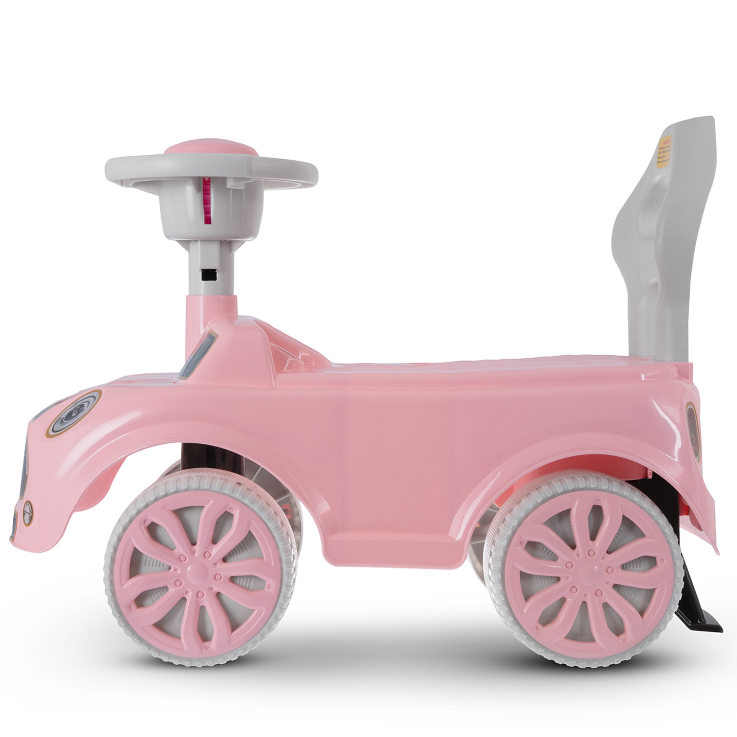 • высокая спинка обеспечивает поддержку для спины и дополнительную безопасность при катании, а также служит малышу опорой при ходьбе;