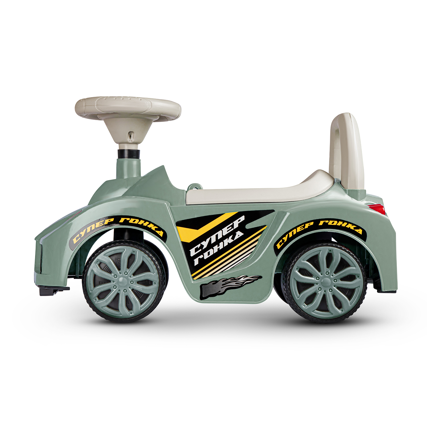 • Толокар выполнен в виде гоночного автомобиля, на нем можно кататься не только дома, но и на улице.