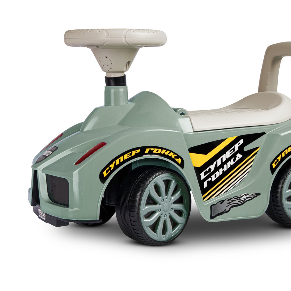 • Цветные наклейки, реалистичный дизайн, пластиковые фары, имитация спидометра и литых дисков сделают каталку по-настоящему любимой игрушкой.