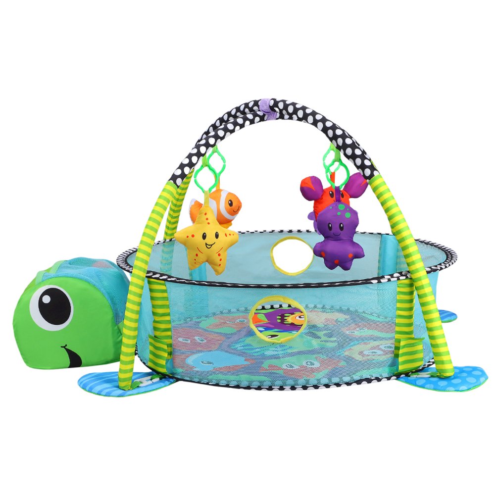 Детский развивающий коврик "Черепаха", высокие бортики, мягкие дуги и подвески, 12 шариков в комплекте, 46*11*43 см