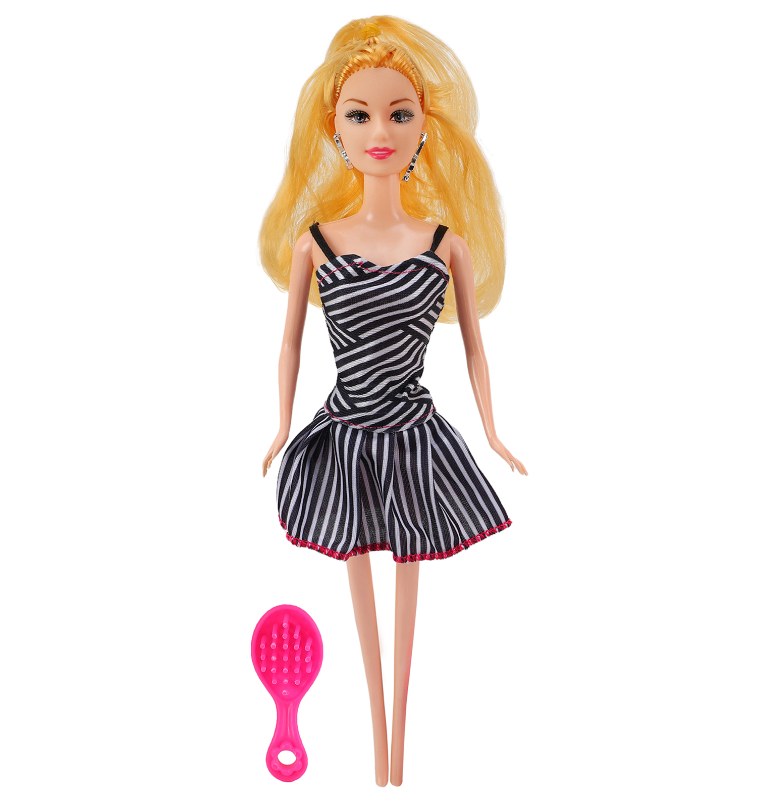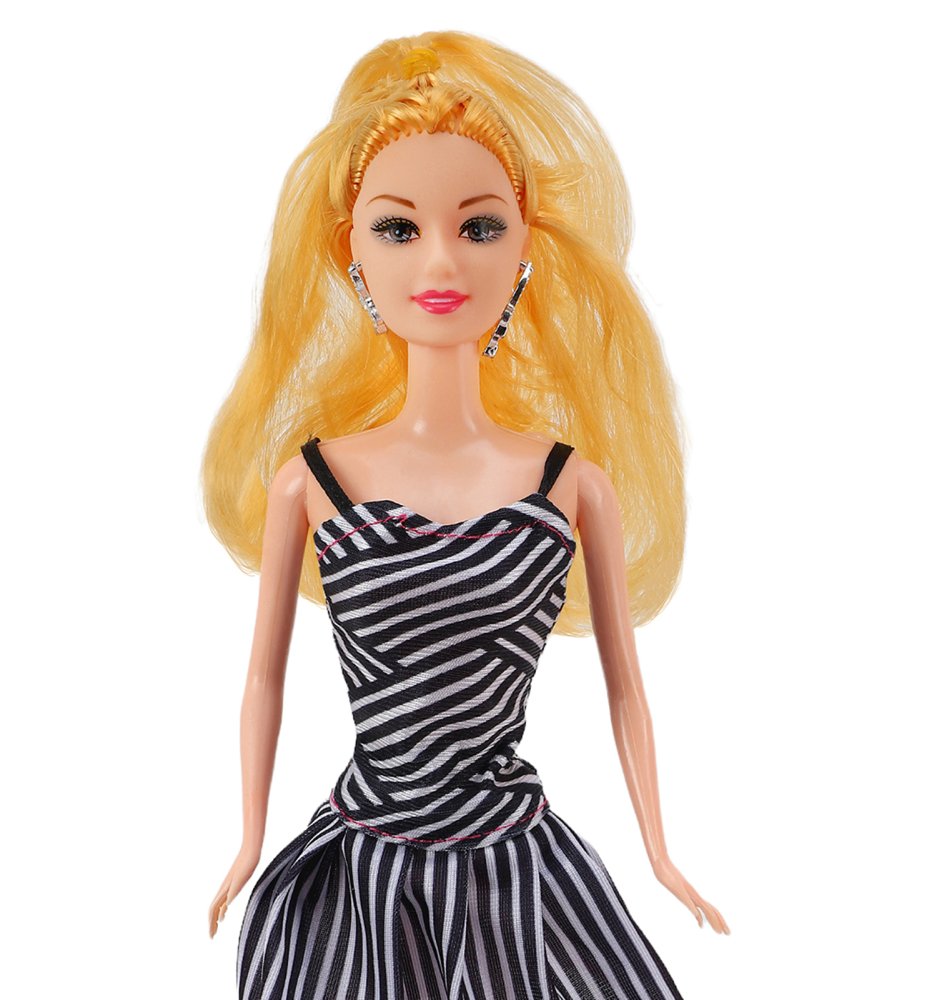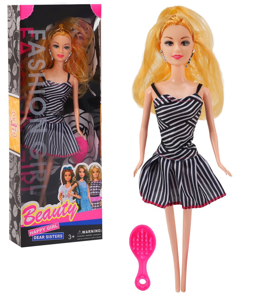 Кукла "Модница" в красивом платье - всегда приятный и актуальный подарок для маленькой принцессы. У куклы длинные волосы, которые можно заплетать. Модница одета в красивое платье в полоску. Кроме того, у куклы подвижные ручки и ножки, которые позволяют создавать различные положения во время игры. С куколками ребёнок проигрывает сценки из реальной жизни и придумывает интересные истории, развивая воображение, мелкую моторику, фантазию и речевые навыки. В комплекте расческа. Размер куклы: 28 см. Рекомендуемый возраст: 3+ Размер упаковки: 16*5*32,5 см