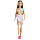 У куклы длинные волосы, которые можно заплетать. Модница одета в красивый купальник и юбочку. Кроме того, у куклы подвижные ручки и ножки, которые могут позволить кукле больше различных положений во время игры.С куколками ребёнок проигрывает сценки из реальной жизни и придумывает интересные истории, развивая воображение, мелкую моторику, фантазию и речевые навыки.