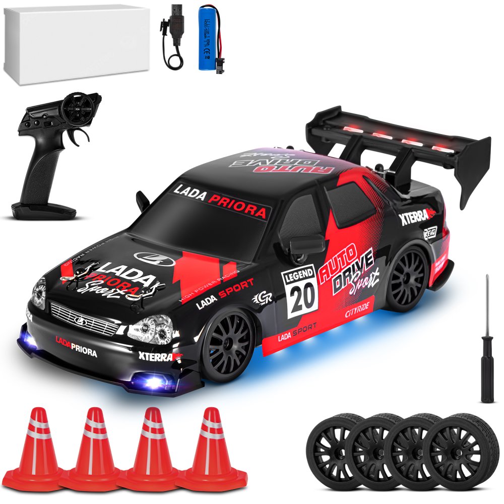 В комплекте идут сменные колеса с резиновыми шинами для более стабильного вождения, а также конусы, чтобы создать свою собственную гоночную трассу. Они помогут вам выстроить интересные препятствия, что добавит в ваши гонки дополнительный виток увлекательности. Полный привод обеспечивает отличную проходимость и уверенное поведение на любых поверхностях. Не упустите возможность добавить немного адреналина в свою жизнь! Подходит для детей от 3 лет, но доставит удовольствие и взрослым любителям скорости. Подарите своему ребенку или себе незабываемые моменты с радиоуправляемой машинкой LADA Priora от AUTODRIVE!