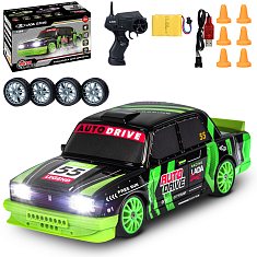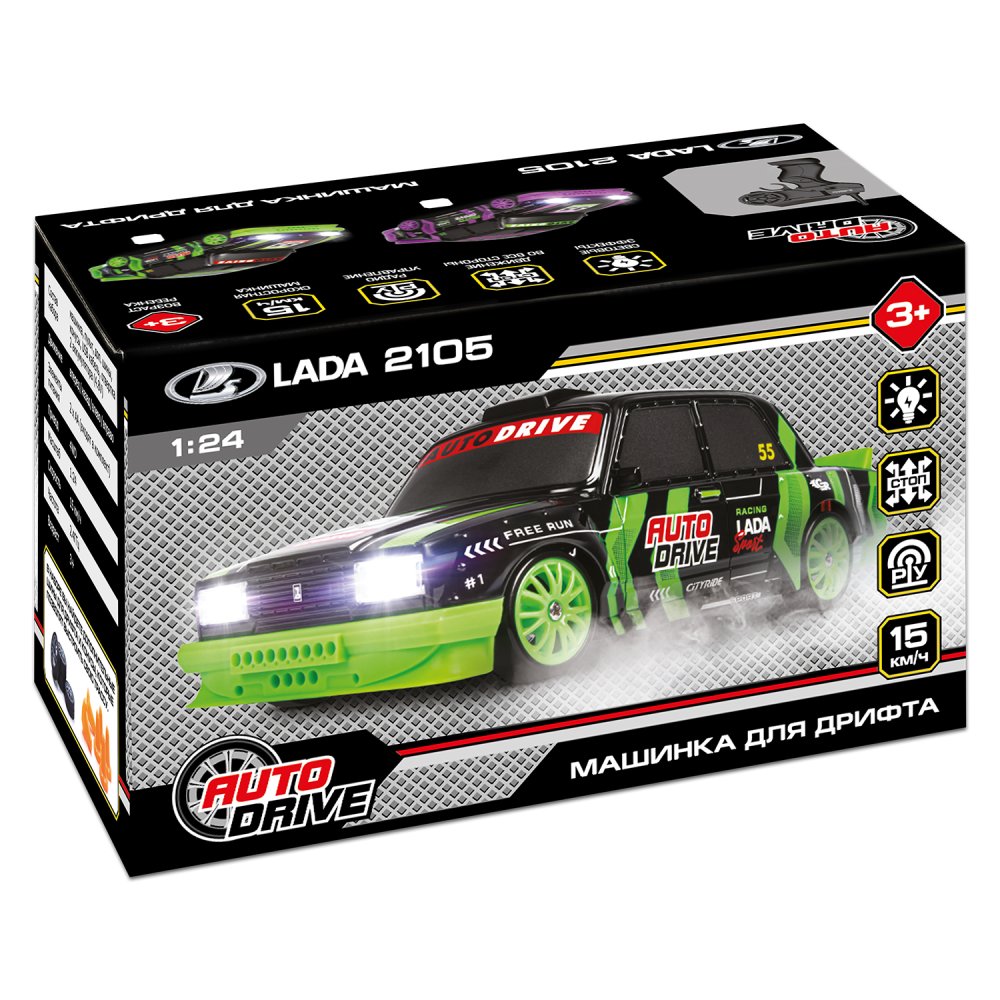 AUTODRIVE Р/У Машина для дрифта LADA 2105,М1:24,2.4GHz,4WD,свет фар,4 доп.колеса,конусы,с аккум.,цв. черн/зелен.,в/к 20,5*13*13см