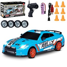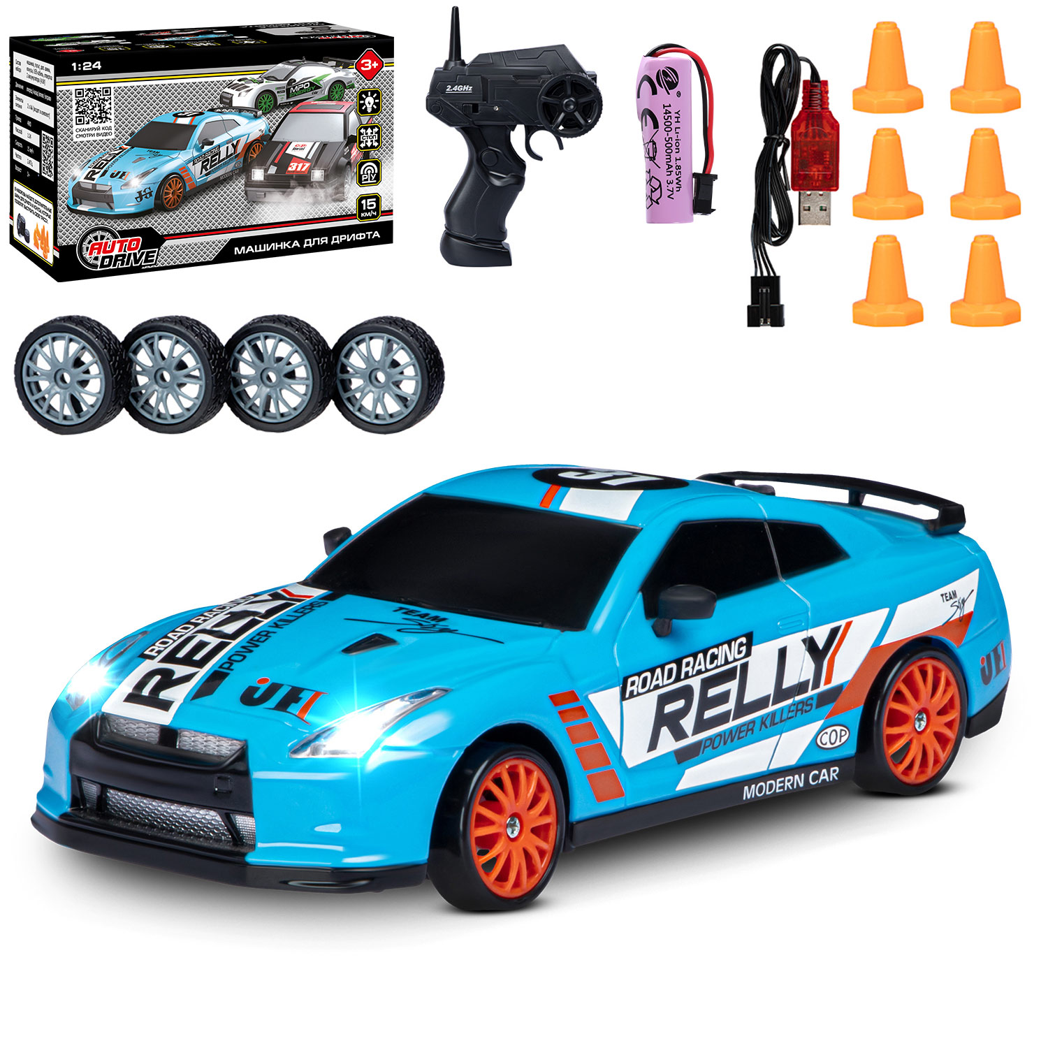 Машинка скоростная для дрифта на радиоуправлении AUTODRIVE, 1:24 2.4G, 4WD, 4 канала: вперед/назад, повороты, сменные шины, свет, с зарядкой, цвет голубой, в/к 24,1х10,3х23,7 см