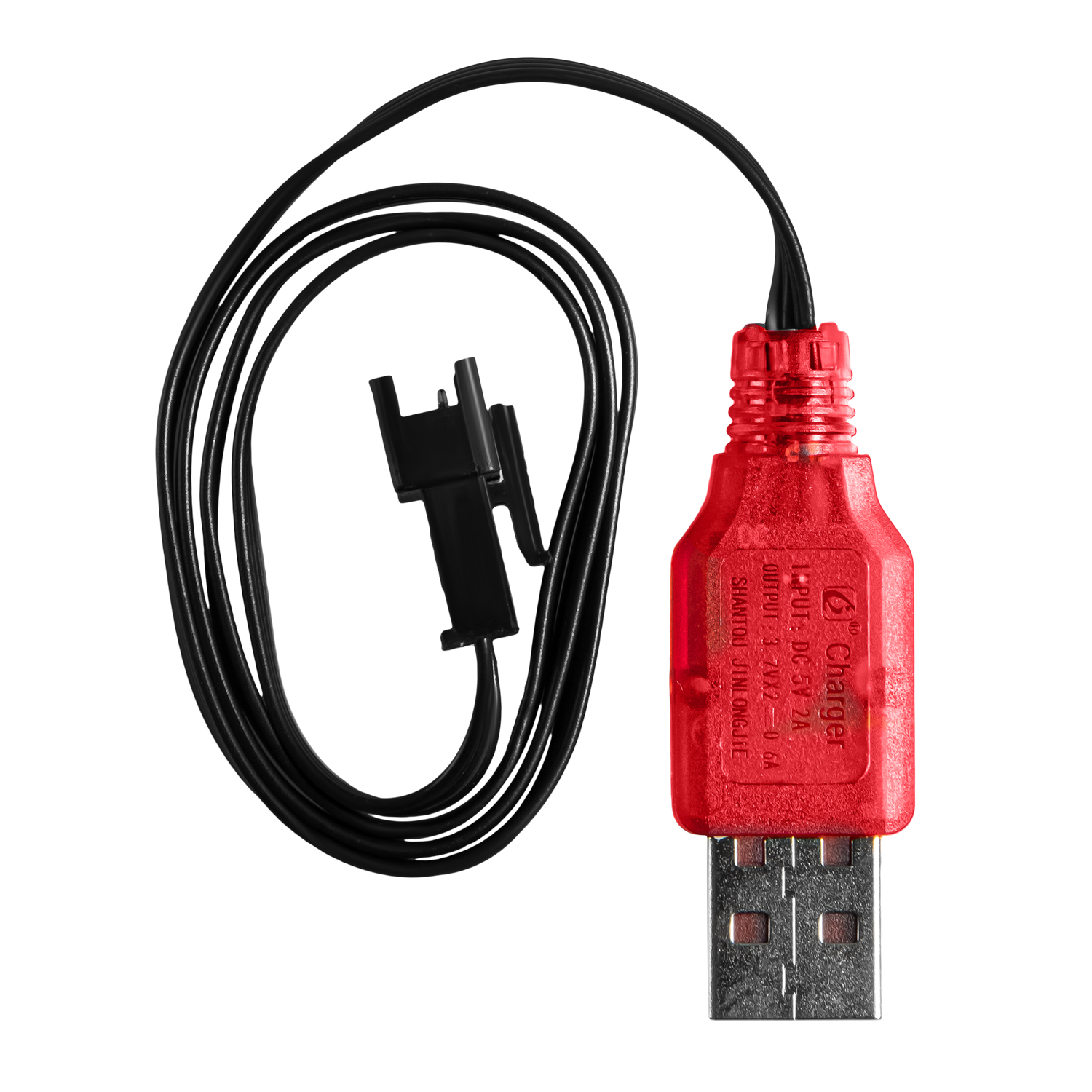 Комплектация: машинка, пульт управления, аккумулятор LI-ION 7.4V, USB-кабель для зарядки, запасные колеса, отвертка, конусы.