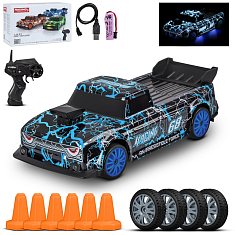 Р/У Машина для дрифта с 3D подсветкой кузова,М1:24,2.4GHz,4WD,4 доп.колеса,конусы 6шт,с аккум.,цв.синий,в/к 20,7*12,2*12,8см