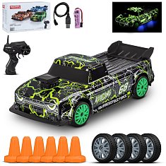 Р/У Машина для дрифта с 3D подсветкой кузова,М1:24,2.4GHz,4WD,4 доп.колеса,конусы 6шт,с аккум.,цв.зеленый,в/к 20,7*12,2*12,8см