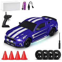 Р/у машинка для дрифта М1:24,2.4GHz,4WD,сменные шины 4шт., конусы 4шт.,свет,с аккум.,цвет синий,в/к