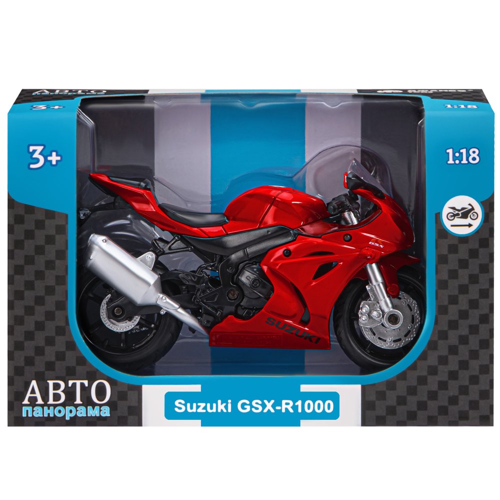 ТМ "Автопанорама" Мотоцикл металл. 1:18 SUZUKI GSR-R1000, красный, свободный ход колес, в/к