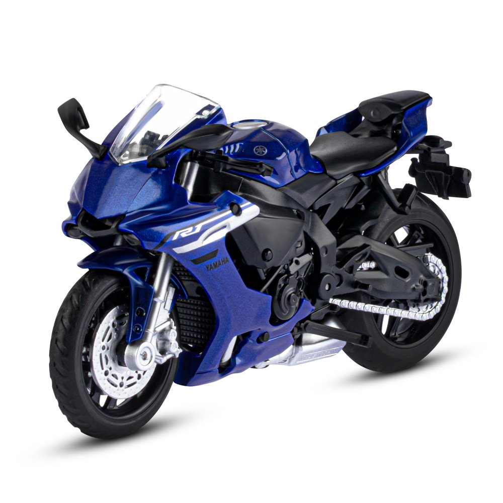 Игрушка для детей: Мотоцикл металлический 1:18 YAMAHA, цвет синий, свободный ход колес, артикул JB1251767