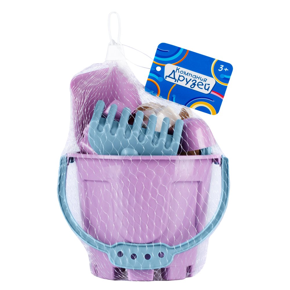 ТМ "Компания Друзей" Песочный набор №93 бледный розовый (в комп. ведро 1,2 л, лопатка 20см, грабли ,