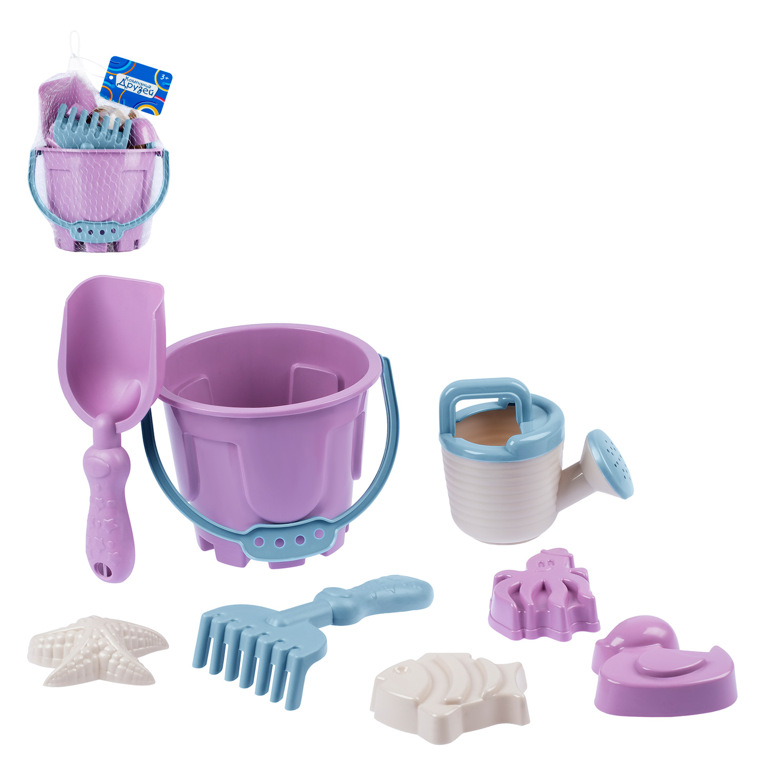 Набор для песочницы торговой марки "Компания Друзей" станет отличным подарком для мальчиков и девочек. В песочный набор входит всё самое необходимое для весёлой игры: ведёрко для песочницы, лейка детская, лопатка, грабли и 4 формочки для песка. Игрушки для песочницы имеют удобные размеры, ими комфортно играть даже самым маленьким. Элементы набора не имеют острых краёв и мелких деталей, изготовлены из качественной пластмассы, не содержащей вредных веществ. Они полностью безопасны для детей, имеют необходимый сертификат и соответствуют установленным требованиям. Игрушки для песка легко чистятся и быстро сохнут после мытья. На них не скапливаются бактерии, что делает процесс использования более гигиеничным. Набор игрушек для песочницы подойдет для игры с песком, с водой, а также с кинетическим песком. Зимой набор подойдет для игры со снегом. Благодаря компактным размерам, комплект легко хранить и брать с собой на пляж, на дачу или в детский сад. Игра с песком развивает воображение, мелкую моторику, творческие способности, благотворно влияет на общее развитие. Комплектация: ведёрко 1,2 л, лейка 0,2 л, лопатка 20 см, грабли 16 см, 4 формочки 9 см Упаковка: сетка Материал: пластик