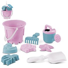 ТМ "Компания Друзей" Песочный набор №93 ярко-розовый-темно-серый(в комп. ведро 1,2 л, лопатка 20см, грабли 16см, 4 формочки 9 см, лейка 0,2 л) 22х18х18 см