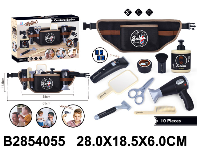 Игровой набор «Барбер» — это увлекательная игрушка, позволяющая маленьким мастерам окунуться в мир парикмахерского искусства. В наборе представлены различные инструменты и аксессуары, необходимые для создания причёсок: ножницы, детская безопасная бритва, триммер с разными насадками, фен, кисточка для бритья, расчёска, зеркало и поясная сумочка барбера.