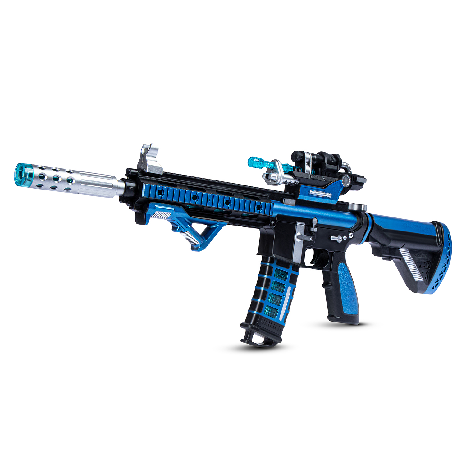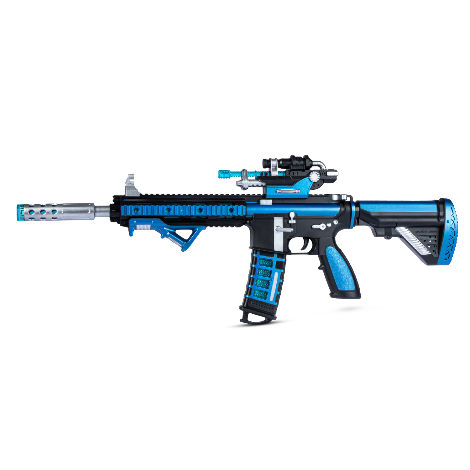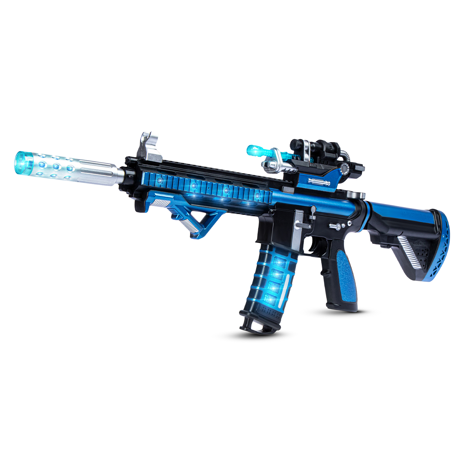 Автомат не стреляет пульками, поэтому с ним могут играть даже самые юные поклонники игрового оружия. При нажатии на курок игрушка воспроизводит звуки, красиво светится и вибрирует!