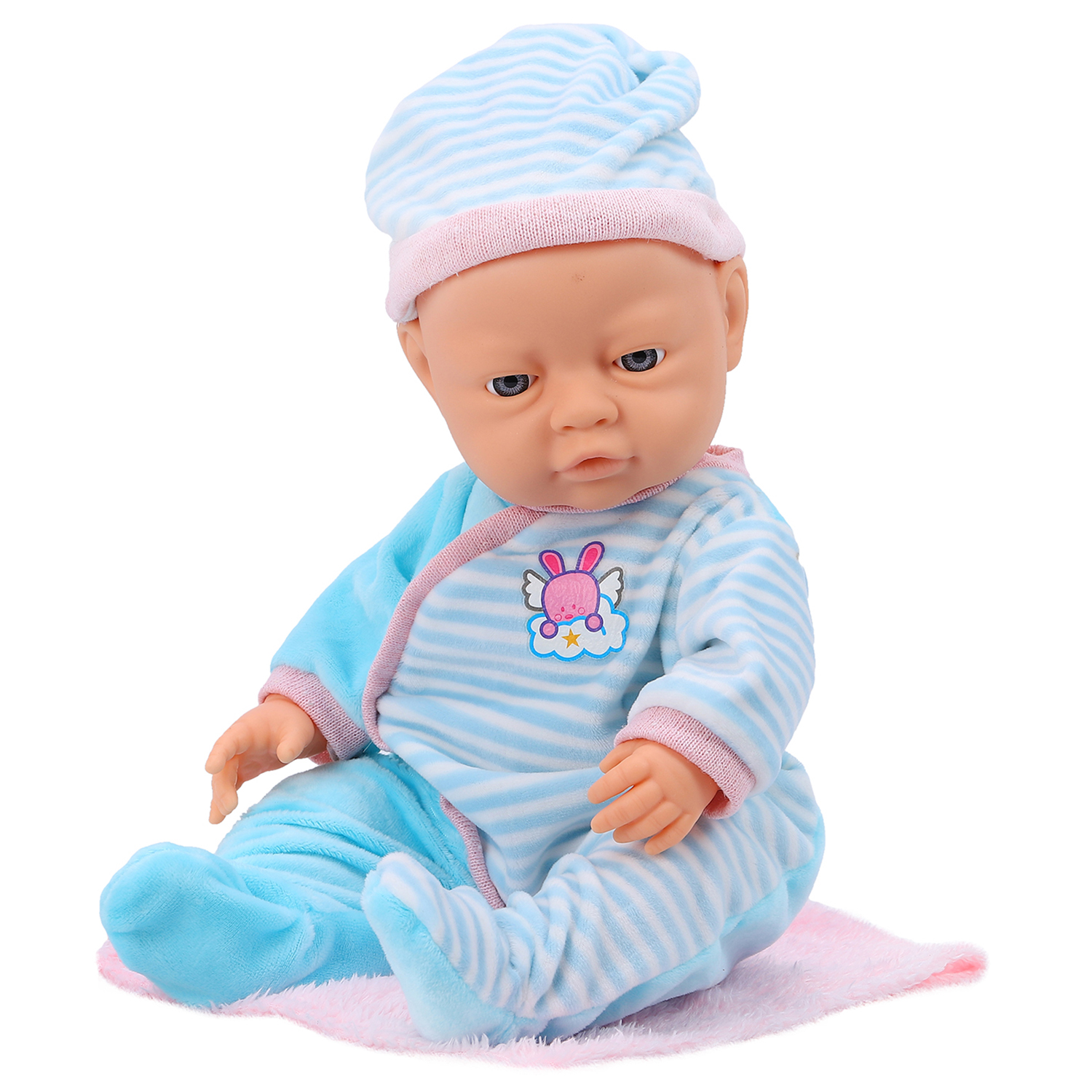 Пупс в розовом костюмчике 20 см. ,в компл.плед с ушками , в/п 20*7