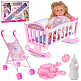 Игровой набор "Кукла с аксессуарами",со звук.эффект., в комплекте: коляска-трость, кроватка-колыбель, бутылочка, тарелка с вилкой и ложкой, пустышка, в/к 38*9,5*55,5 см