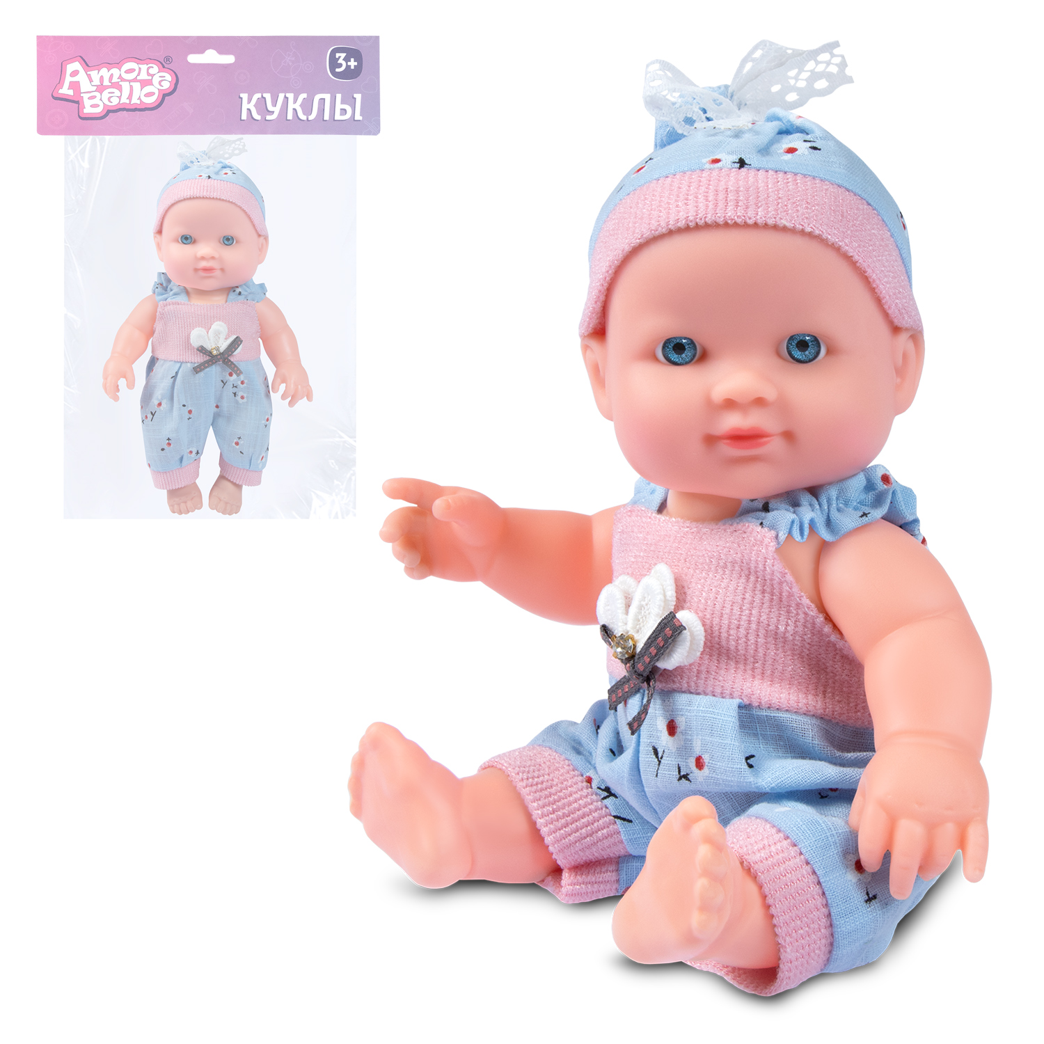 ТМ "Amore Bello" Пупс 25 см, русский язык, Шаинский: серо-синий комбинезон, в/п