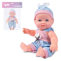 Милый малыш с большими выразительными глазами и нежными румяными щечками умеет разговаривать на русском языке. Пупсик может сидеть, его ручки и ножки подвижны, что делает игру по-настоящему увлекательной. Кукла одета в красивую одежду на липучках. Ребенок сможет легко переодевать карапуза, а также придумывать новые наряды.