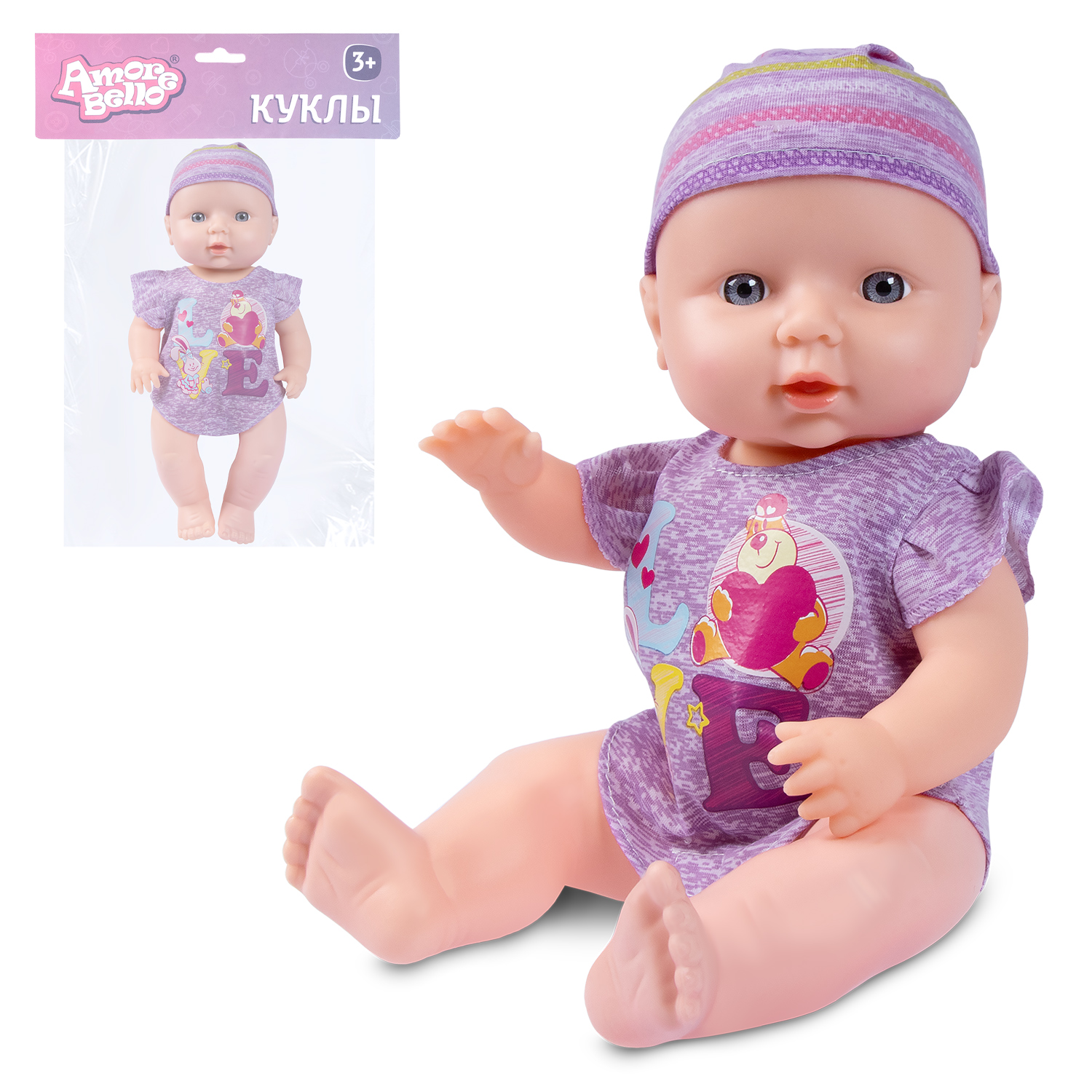 ТМ "Amore Bello" Пупс 30 см, русский язык, Шаинский: фиолетовая туника, в/п