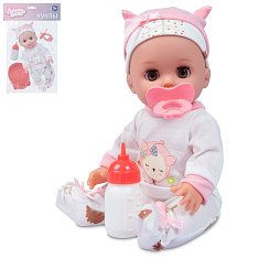 Милые черты лица, большие глаза, которые закрываются в горизонтальном положении, длинные ресницы, красивая одежда обязательно понравятся маленькой принцессе. Пупсик умеет разговаривать на русском языке, может сидеть, его ручки и ножки подвижны. Также он умеет пить воду из бутылочки и ходить на горшок, что делает игру по-настоящему увлекательной. Кукла одета в красивую одежду на липучках. Ребенок сможет легко переодевать карапуза, а также придумывать новые наряды.