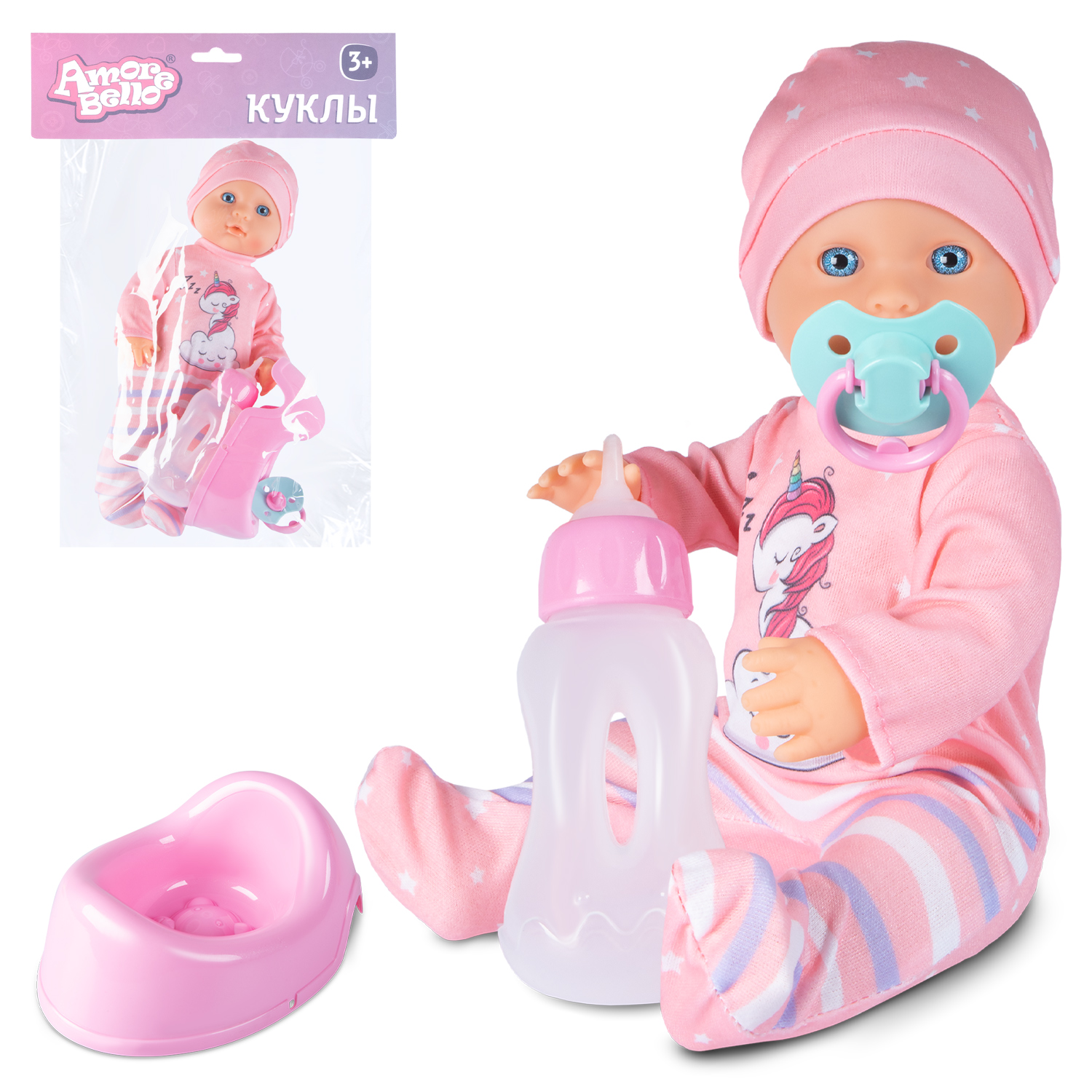 ТМ "Amore Bello" Пупс 30 см, русский язык, Шаинский, пьет и писает: розв. единорог, в/п