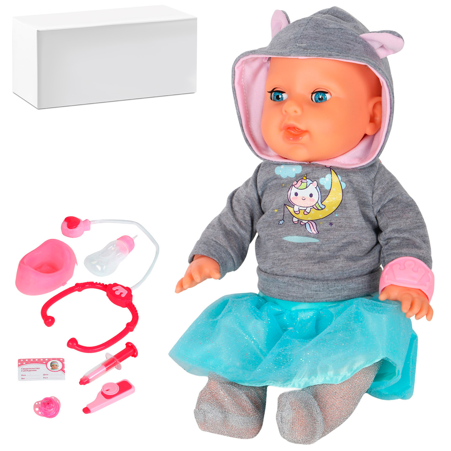 ТМ "Amore Bello" Пупс 30 см, русский язык, Шаинский, пьет и писает: единорог, в/п