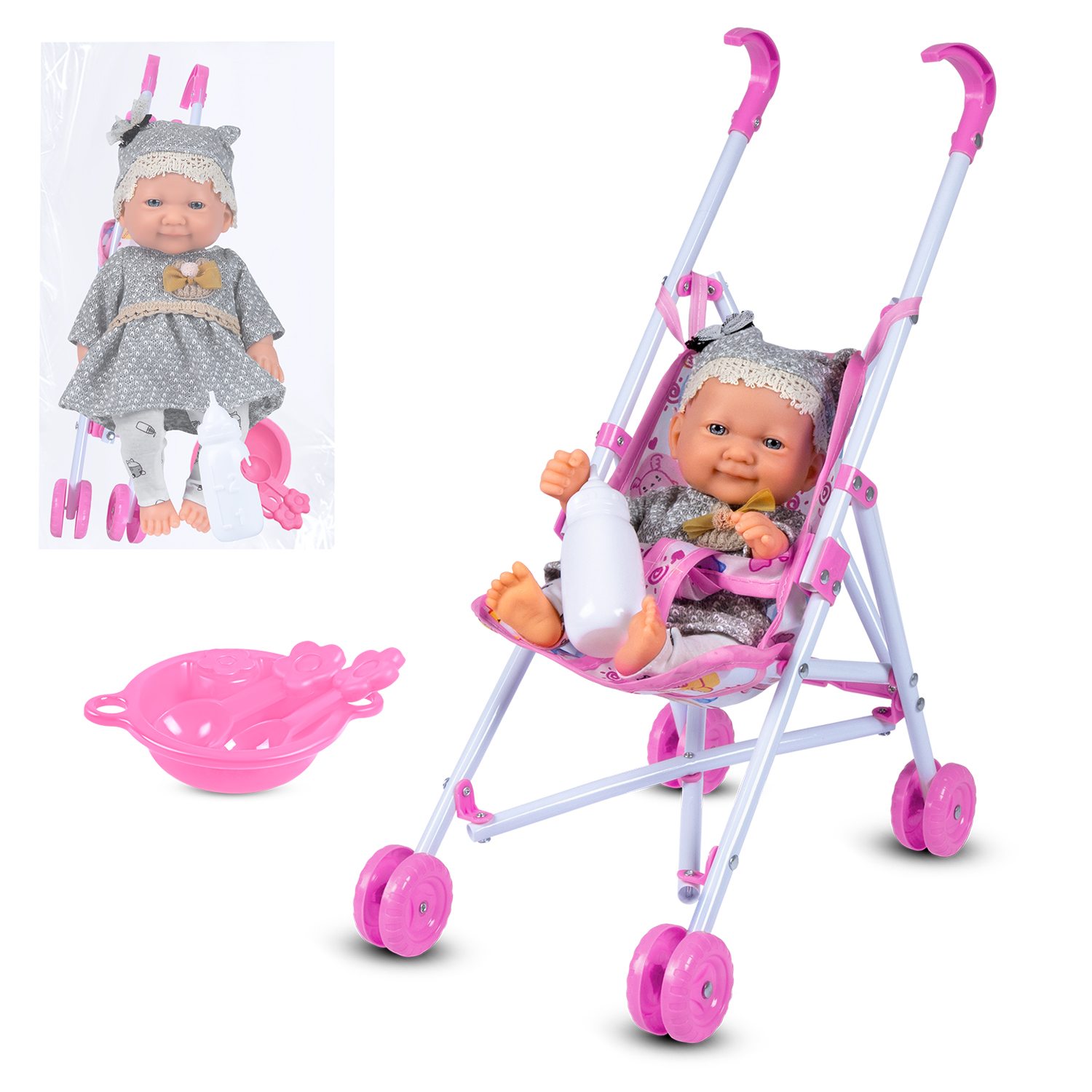 ТМ "Amore Bello" Пупс с коляской, Шаинский, русский язык, розовый, в/п