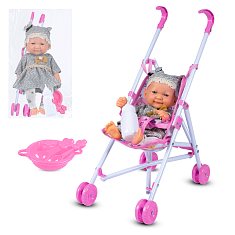ТМ "Amore Bello" Пупс с коляской и акс., пьет и писает, Шаинский, русский, зайка, в/п