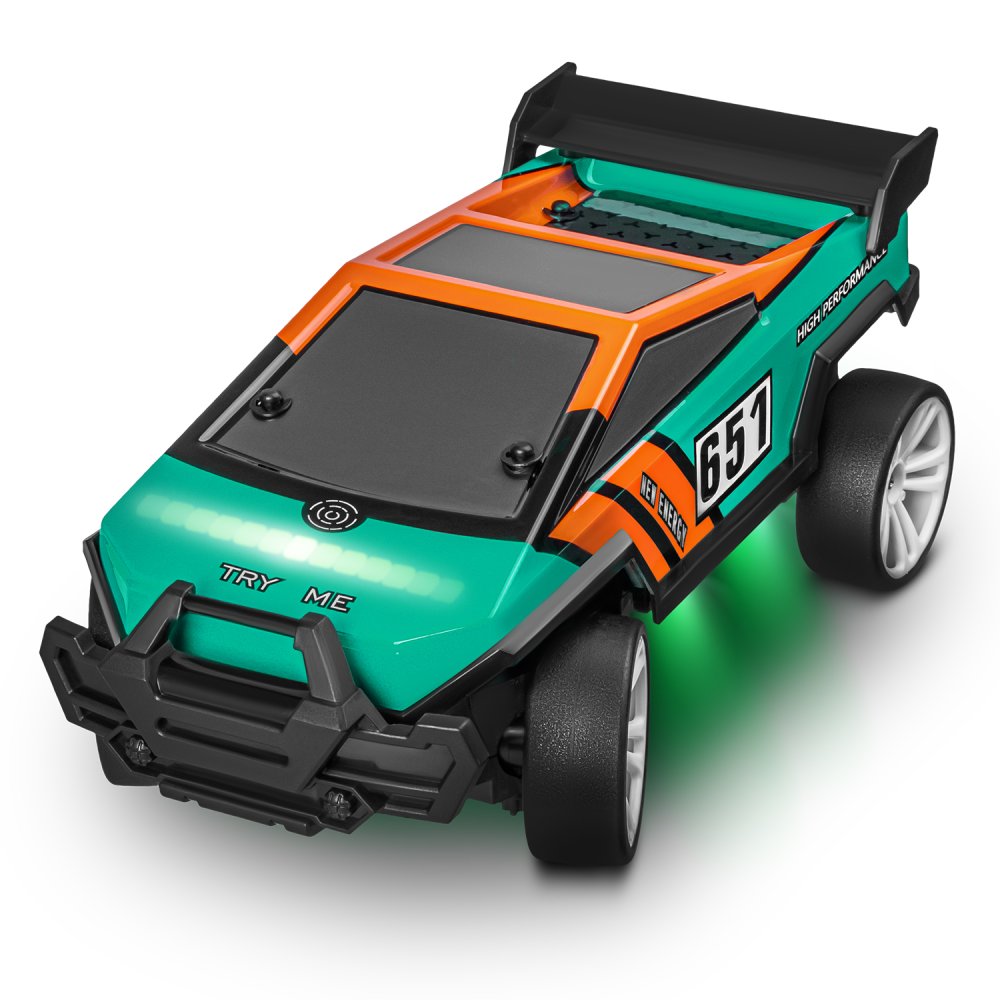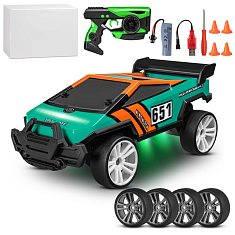 Дрифт машина имеет ударопрочный корпус, который обеспечивает надежную защиту от механических повреждений. Игрушечная машина для дрифта оснащена подсветкой кузова и днища, что позволяет проводить соревнования в темноте.