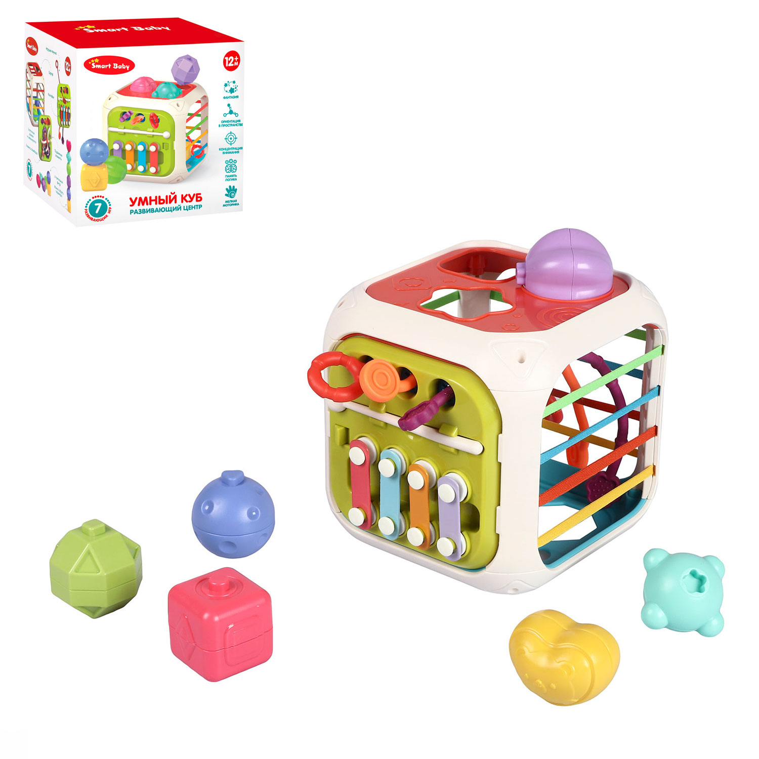 Развивающая игрушка "Умный Куб" - это многофункциональный игровой центр, бизиборд, который позволит малышу не только играть, но и развиваться. В нем собрано столько интересного, сразу несколько игрушек в одной! Каждая грань куба способствует развитию тех или иных навыков. Мультикуб оригинально выглядит и состоит из множества элементов: • 7 развивающих игр в одной игрушке; • Эластичные резинки, устойчивые к деформации, сквозь которые можно просовывать игрушки; • Игрушки-тянучки из безопасного мягкого силикона; • Лабиринт с изогнутыми дугами и бусинами, а также крутящиеся цветные шестеренки; • Дуги можно использовать в качестве ручек для переноски куба; • Ксилофон с 4 разноцветными клавишами на потайной стороне под лабиринтом; • Сортер с объемными разноцветными фигурами, издающими звуки погремушки; • Фигуры собираются в пирамидку, благодаря имеющимся многогранным пазам. Логический куб сделан из качественного пластика без острых краев. Он полностью безопасен для детей, имеет необходимый сертификат и соответствует установленным требованиям. В процессе игры ребенок будет развивать логику, мелкую моторику, ориентацию в пространстве, учиться сортировать и сопоставлять предметы, а также познакомится с цветами и формами. Характеристики: Материал корпуса: пластик Упаковка на русском языке Размер игрушки: 18,5 x 14,8 x 14,8 см Размер упаковки: 15 x 15 x 15 см
